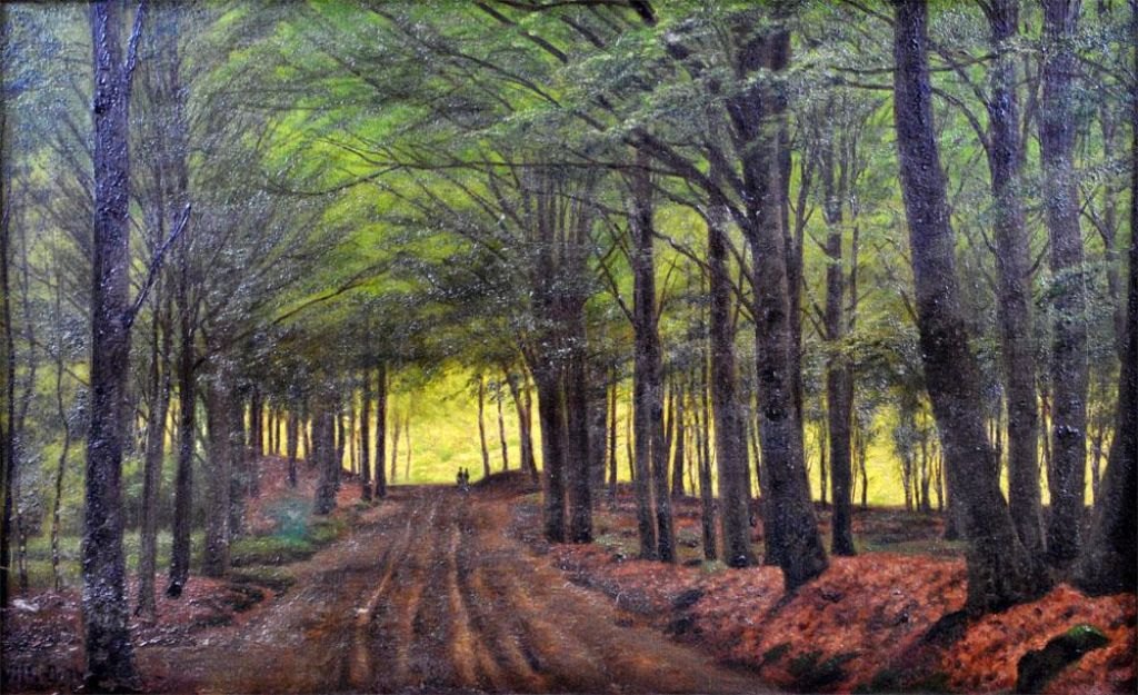 Groth, Vilhelm (1842 - 1899) Denmark. People on a road in a forest