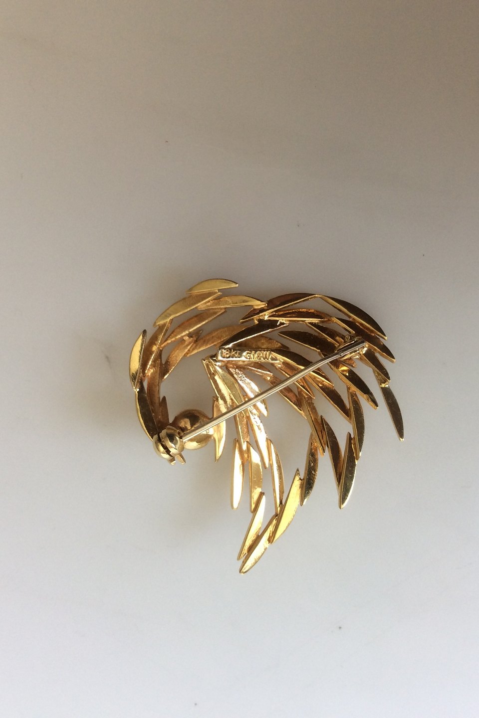 Georg Jensen & Wendel, 18 Kt. Guldbroche med perle