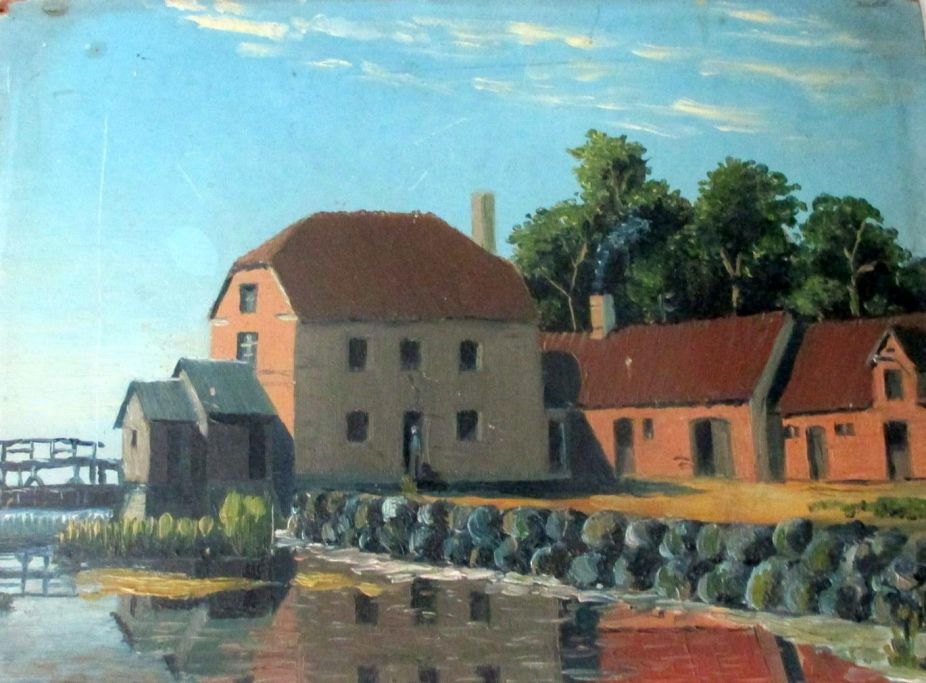 Dansk kunstner (19. årh): En vand mølle. Usigneret. Olie på pap. 18 x 24 cm.