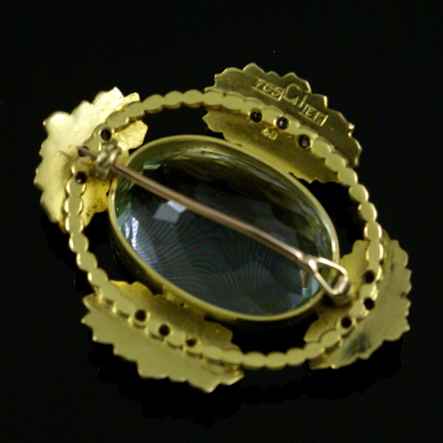 Georg Jensen. 18k Gold Brooch with 12 Diamonds and Faceted Aquamarine #49. 1904-08 Hallmarks