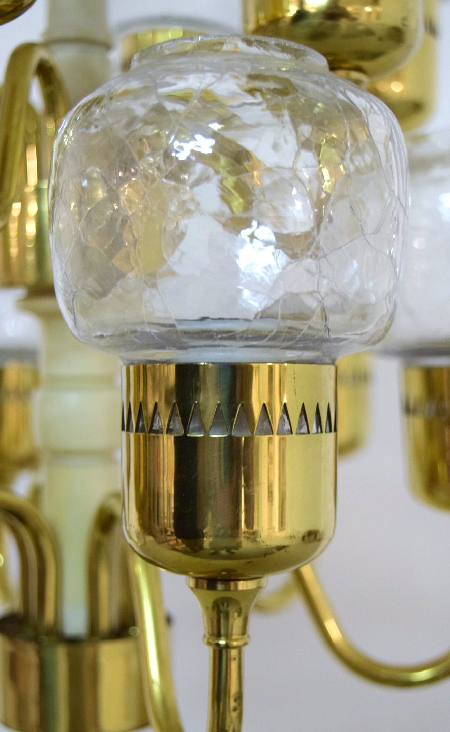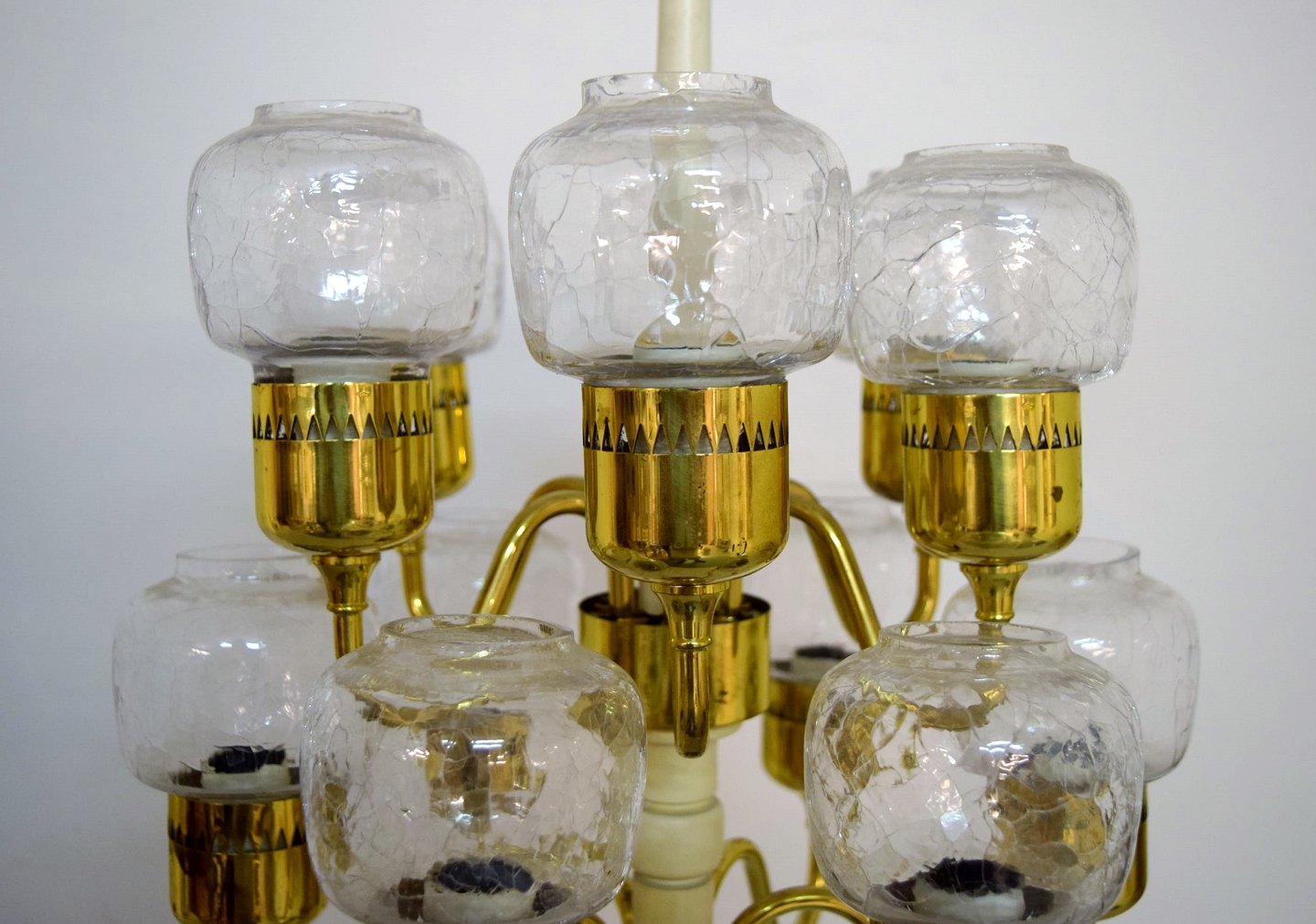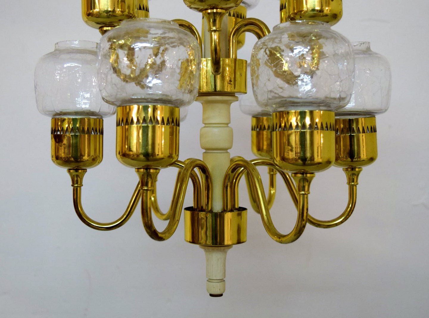 Imponerende Hans Agne Jakobsson, loftsbelysning, Markaryd, 1960-70´erne, 11 glasskærme i mundblæst kunstglas, messing skelet.