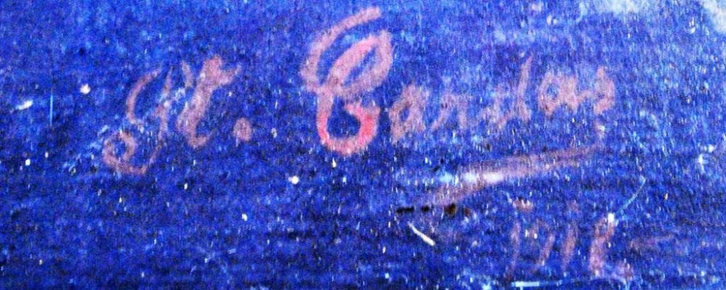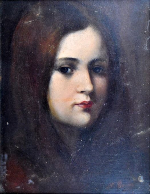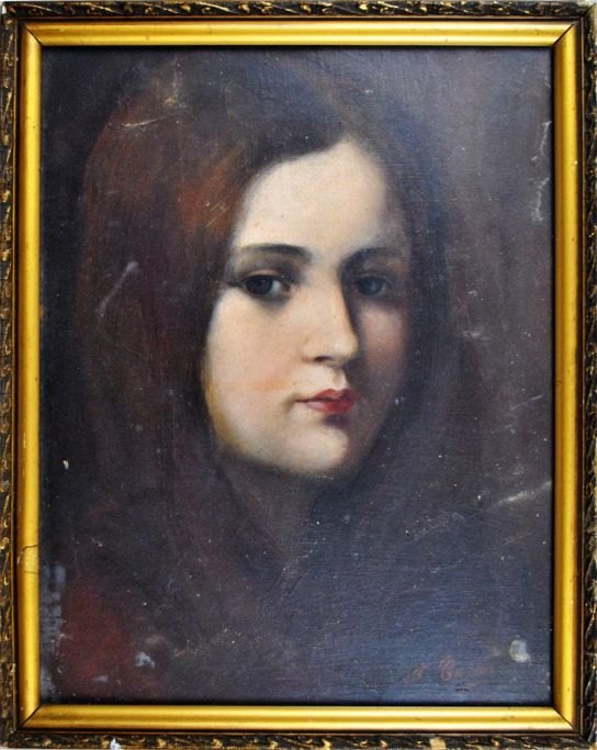 Unknown artist (20th century): Woman portrait. Oil on cardboard. Signed: St. Gardas 1918. 37 x 29 cm.