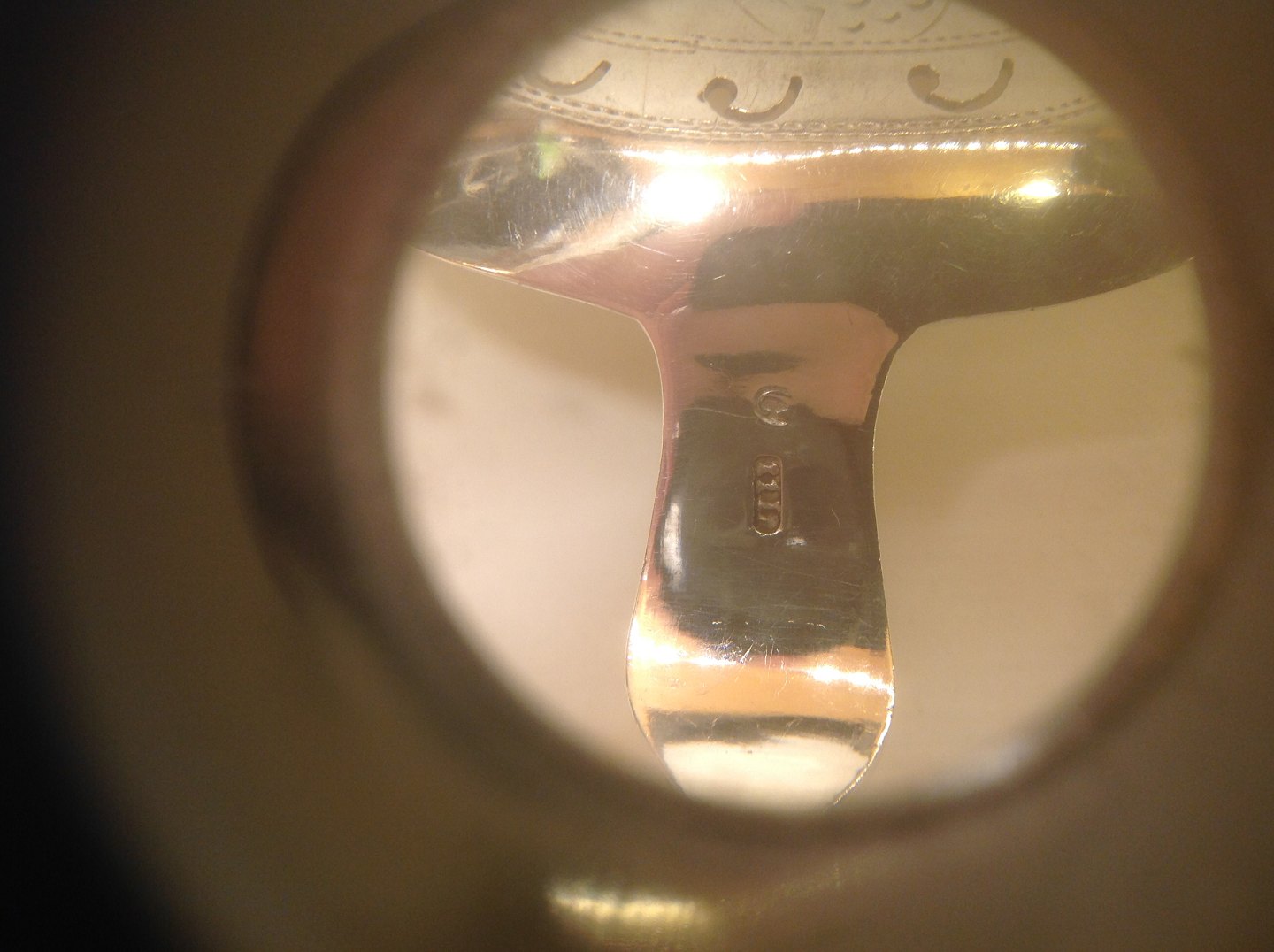 Jordbær ske med snoet skaft og forgyldt i laffen.
