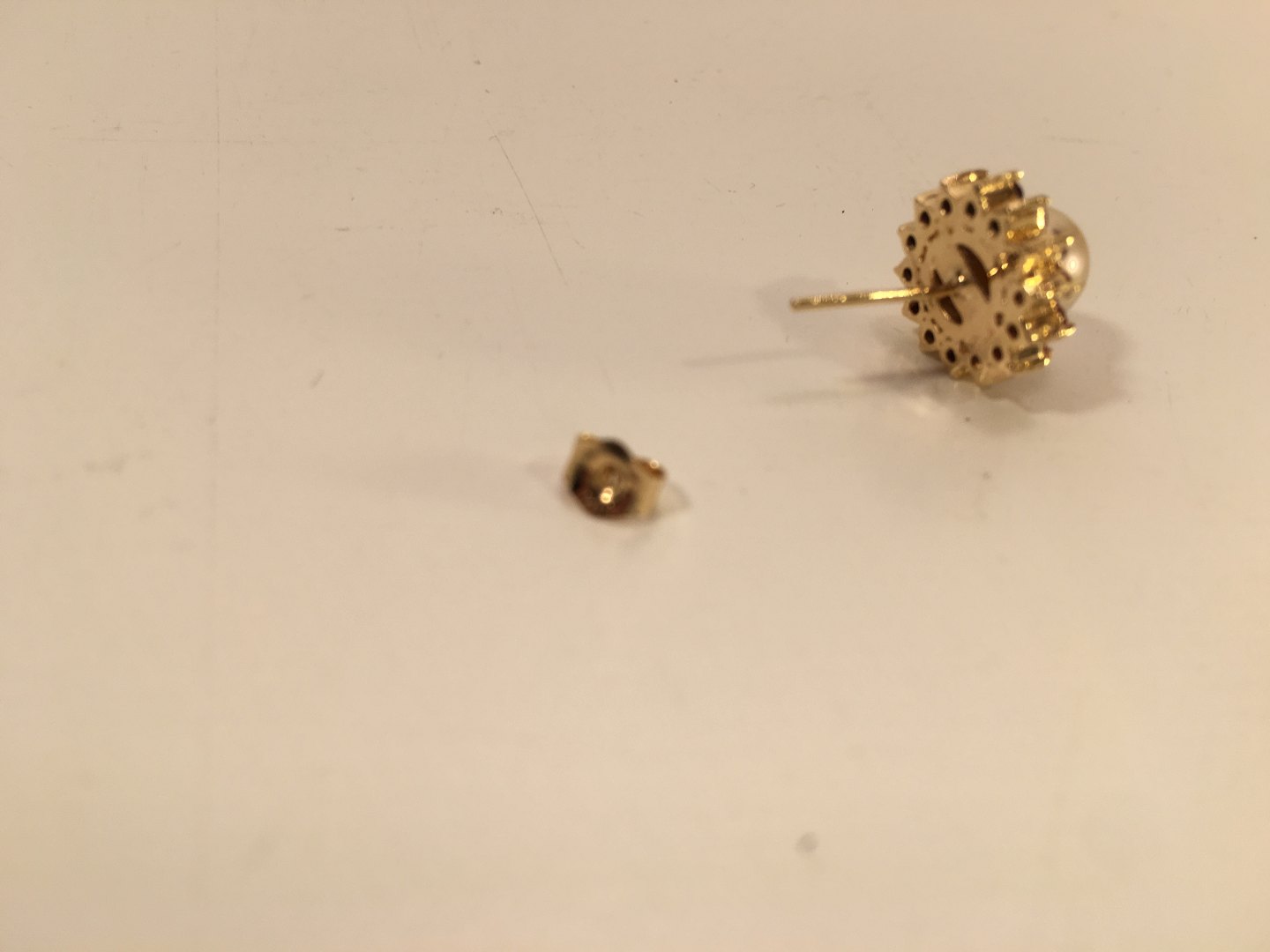 Ørestik med rubiner og perle.