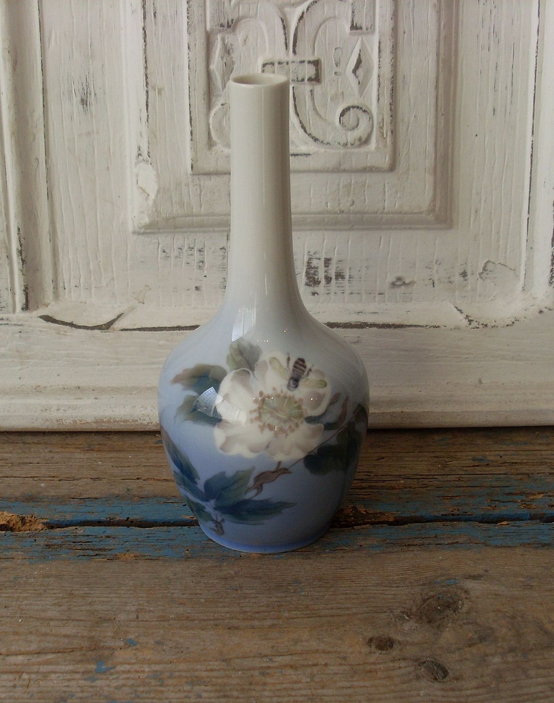 Royal Copenhagen vase dekoreret med rose & bi.