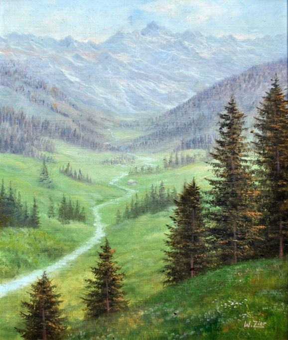 Zier, Wolmer (1910 - 1990) Denmark: Mountain landscape. Oil on canvas. Signed: W. Zier. 38 x 32 cm.