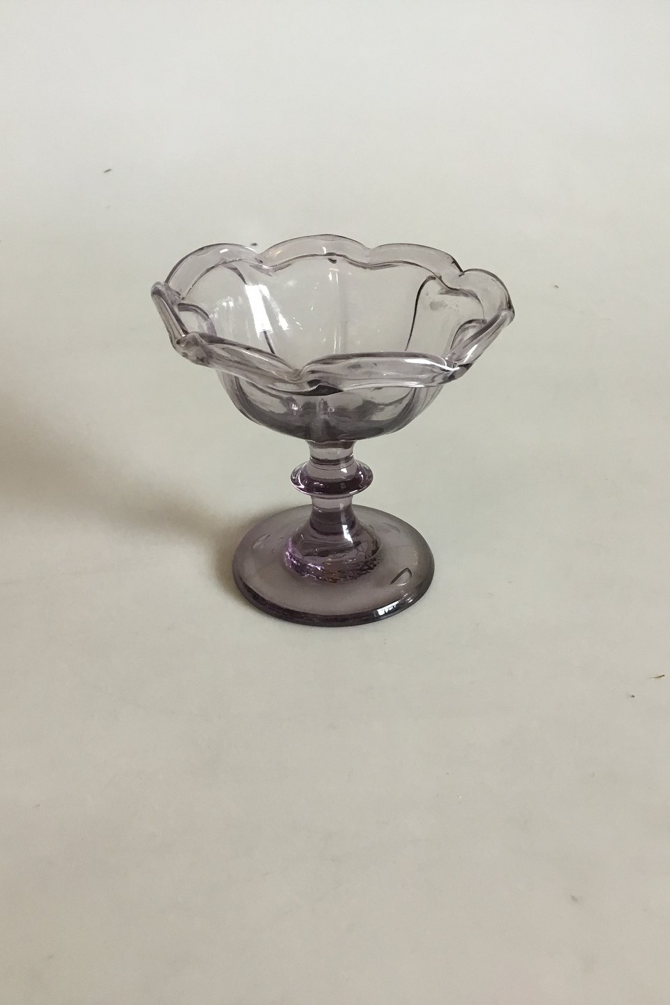 Lille glasopsats af lyslilla glas. Måler 11,5 cm