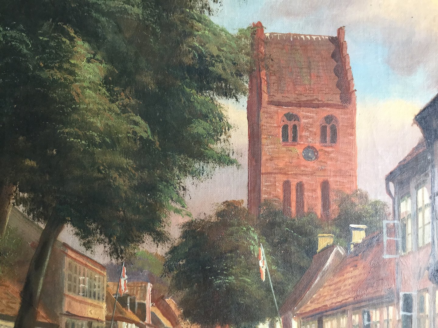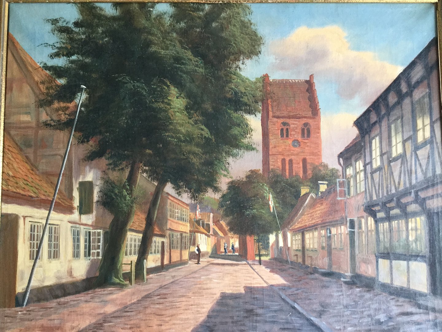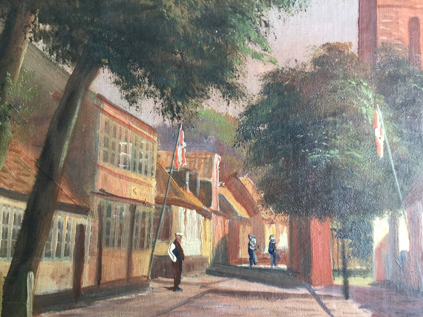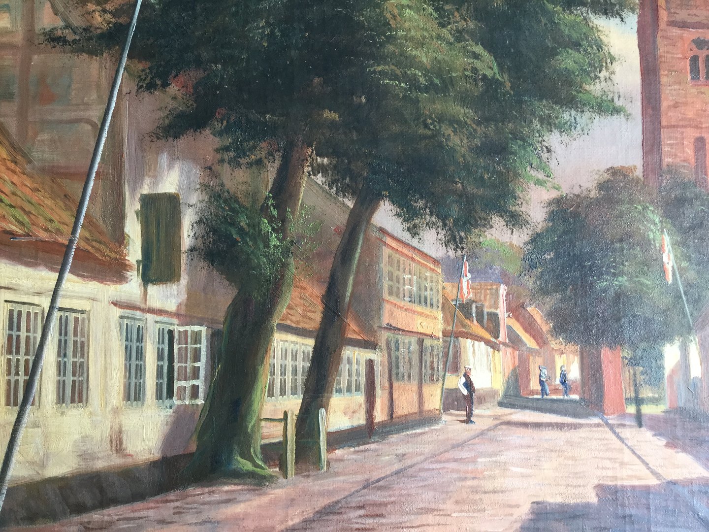 Maleri af Frederik Svendsen - Parti fra Kirkestræde i Køge.