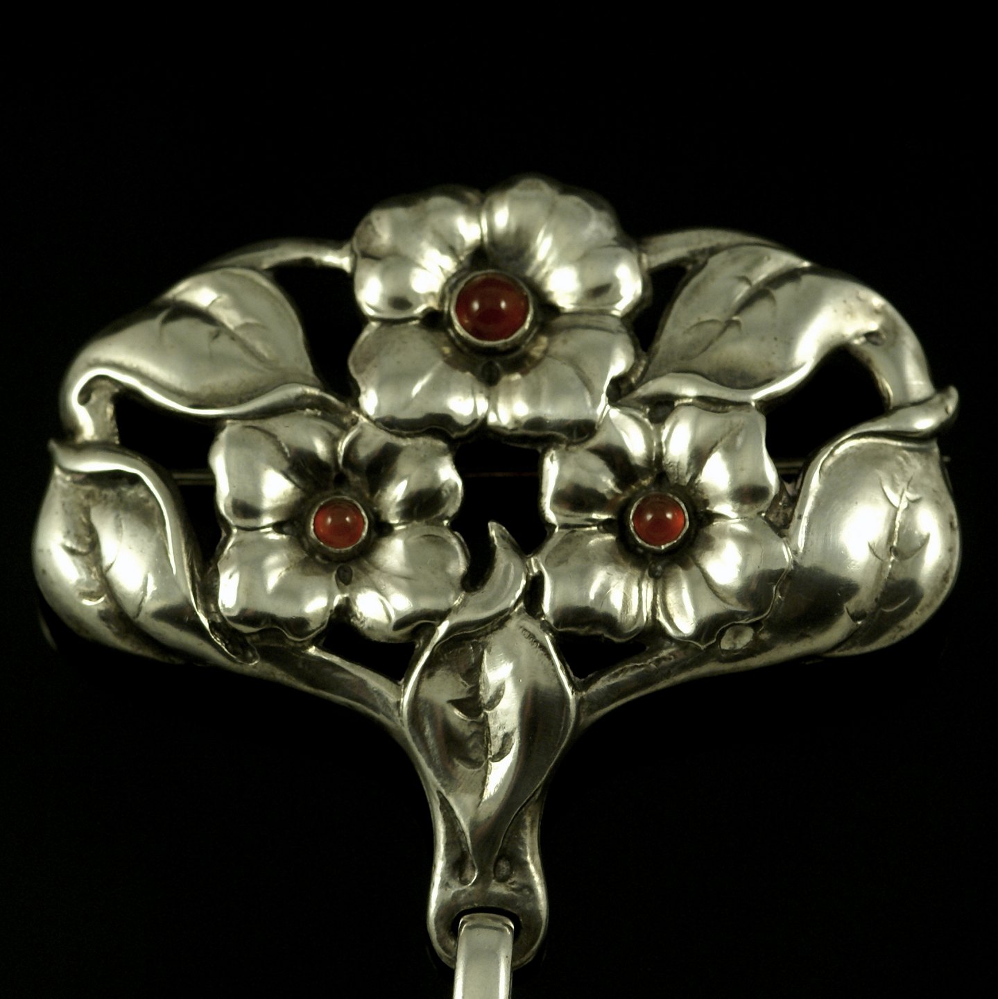 Thyra Vieth 1866-1938. Art Nouveau Silver Brooch with Carnelian.