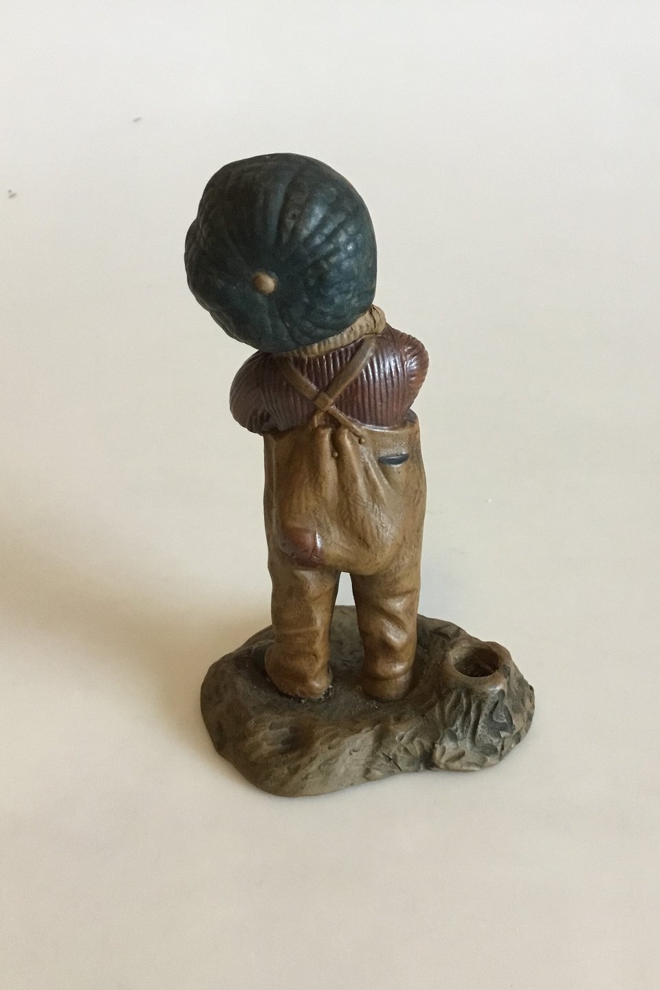 Stentøjsfigur af Dreng. Med lysholder. Signeret, 1933. Måler 13,5 cm.