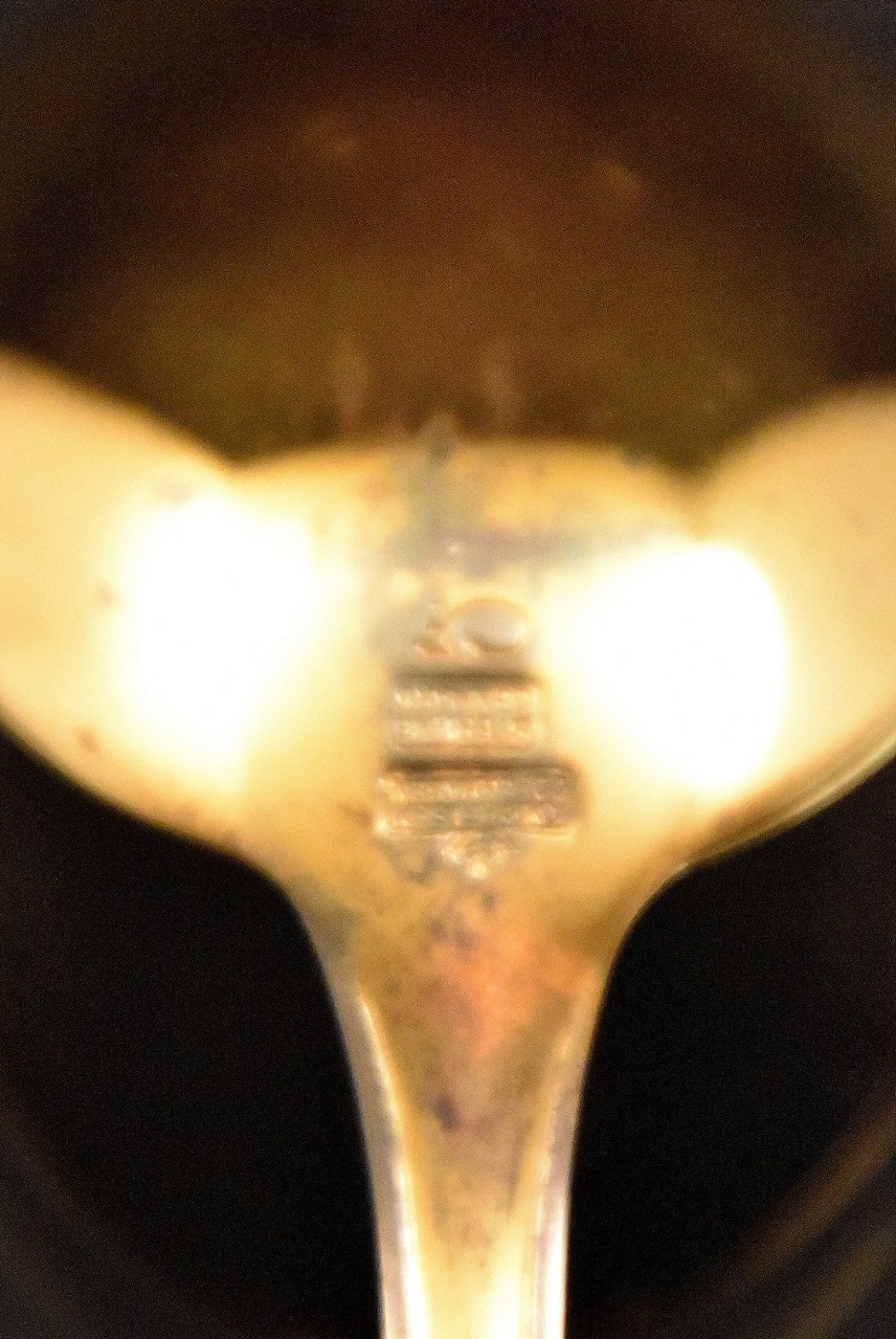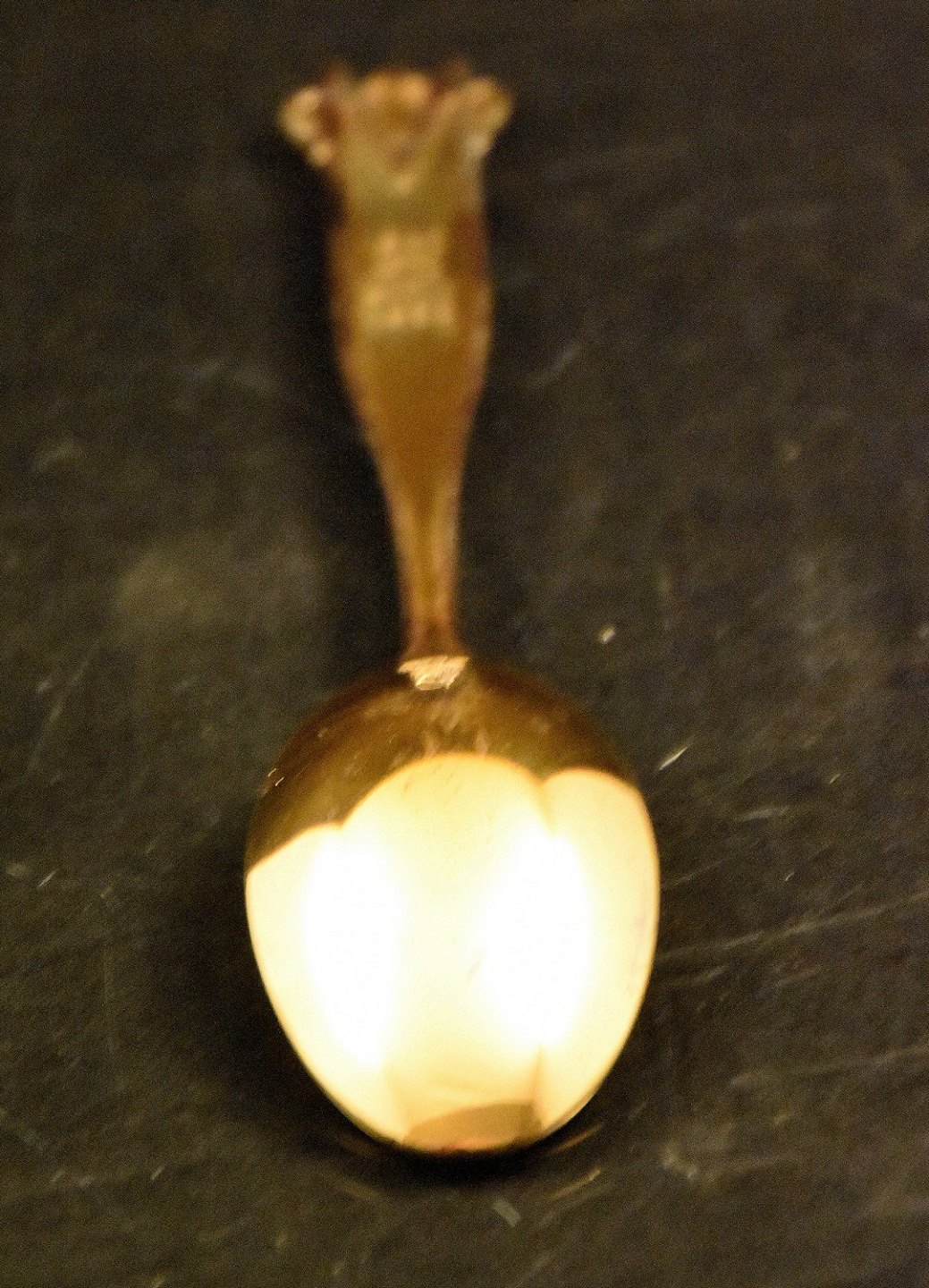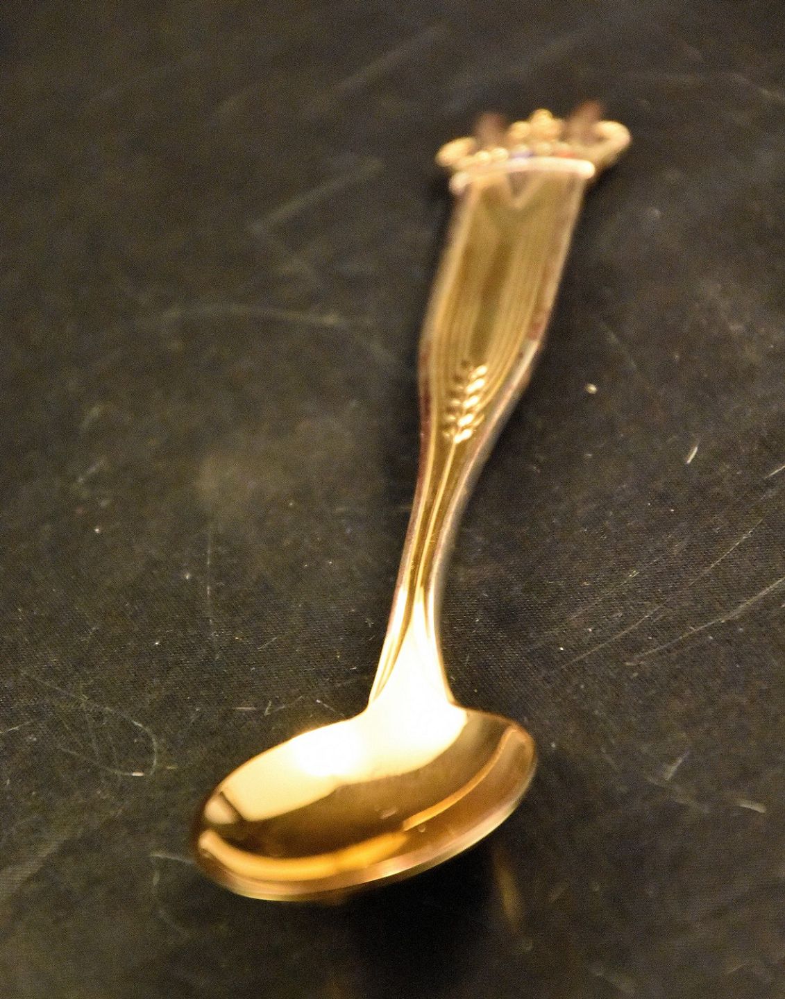 Guldbelagt sølvske, lavet i anledning af Dronning Margrethes 18 års fødselsdag 16. april 1958.