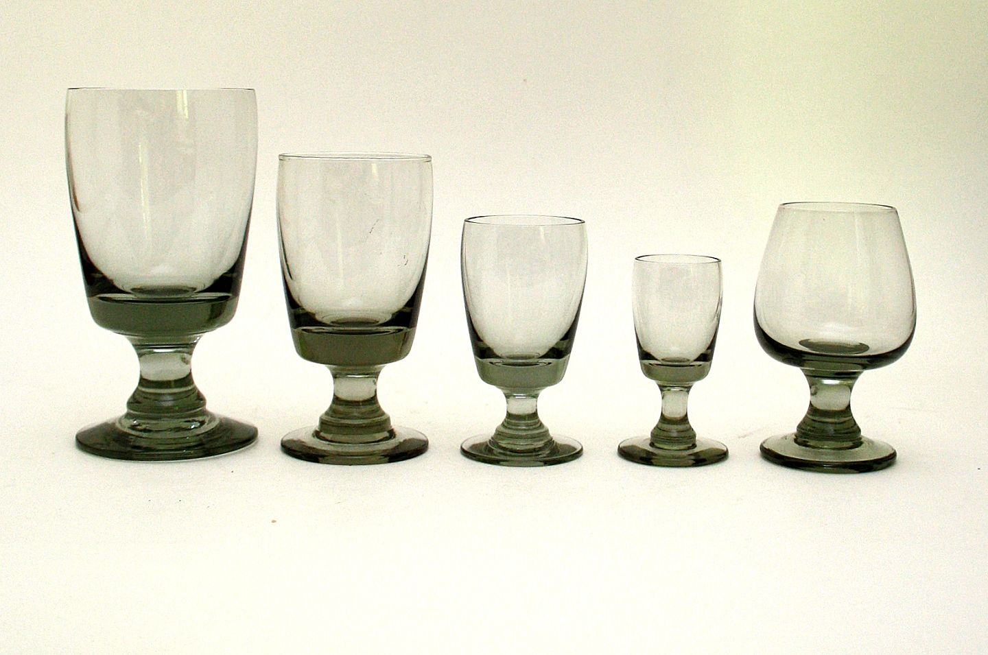 Holmegaard Glasværk, Almue, smoke glasserie, designet af Per Lütken som en kopi af gammelt tøndeformet glas. Produceret i perioden 1965-91