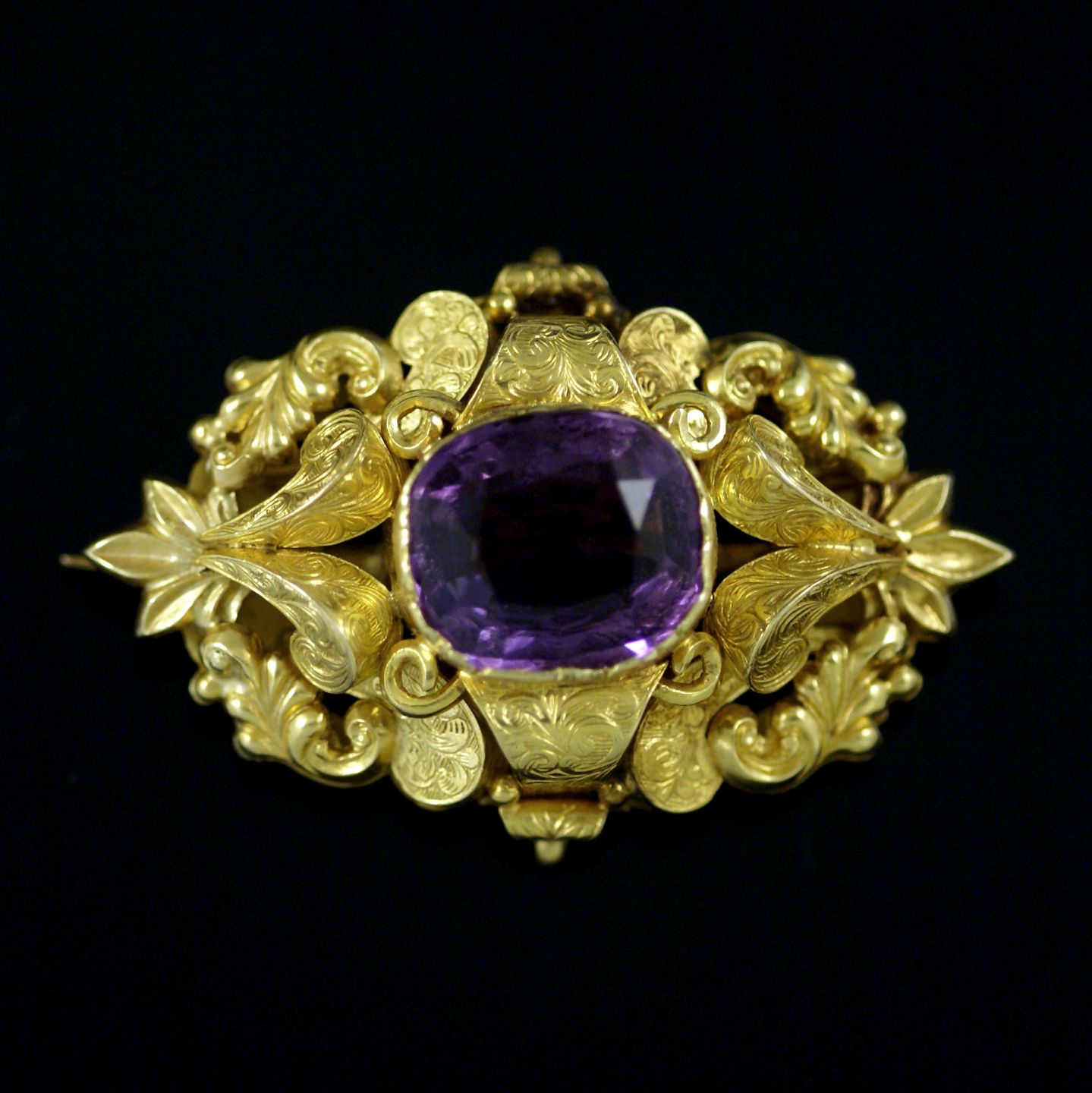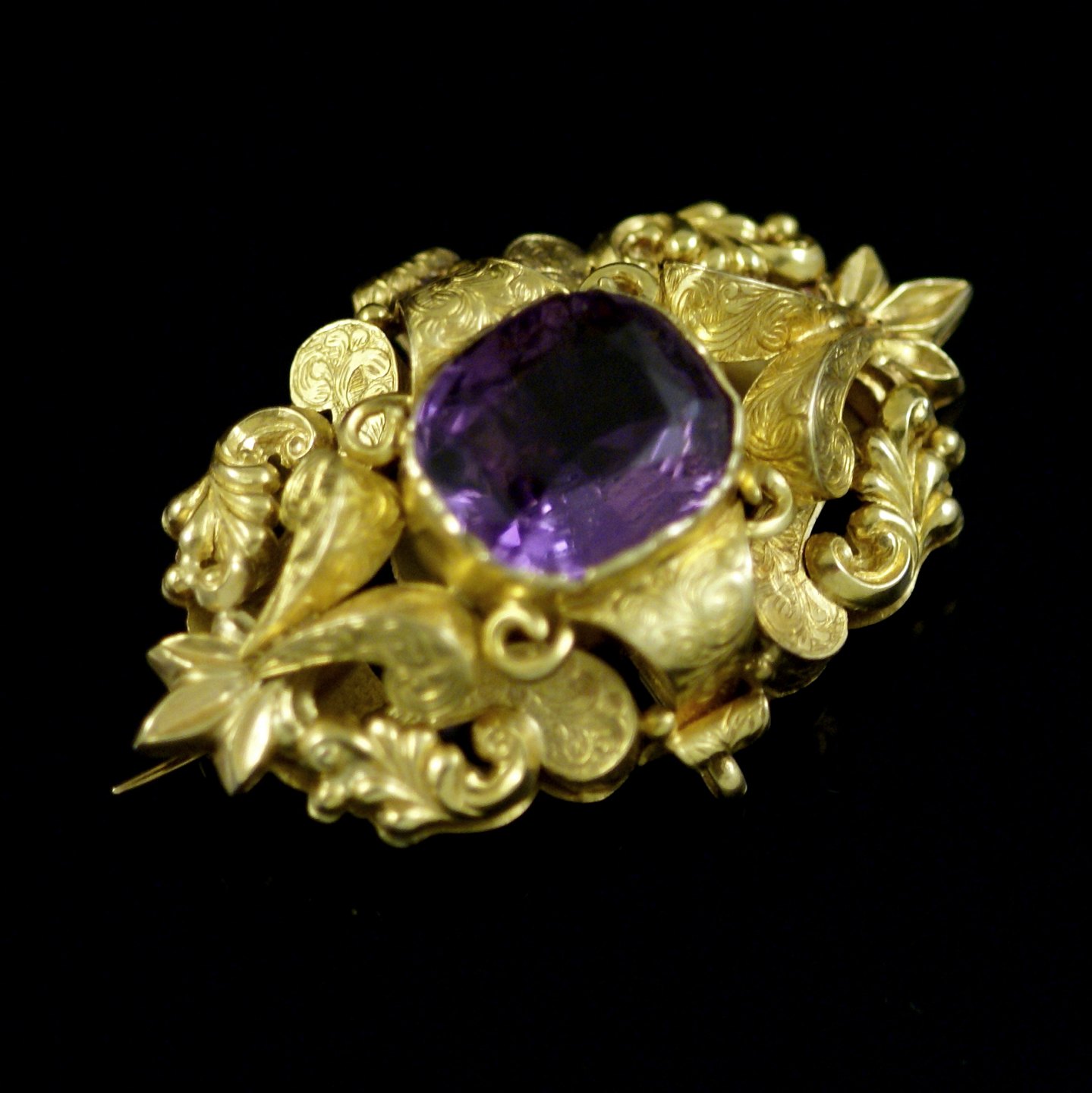 Vintage broche i 18k guld med facetslebet ametyst