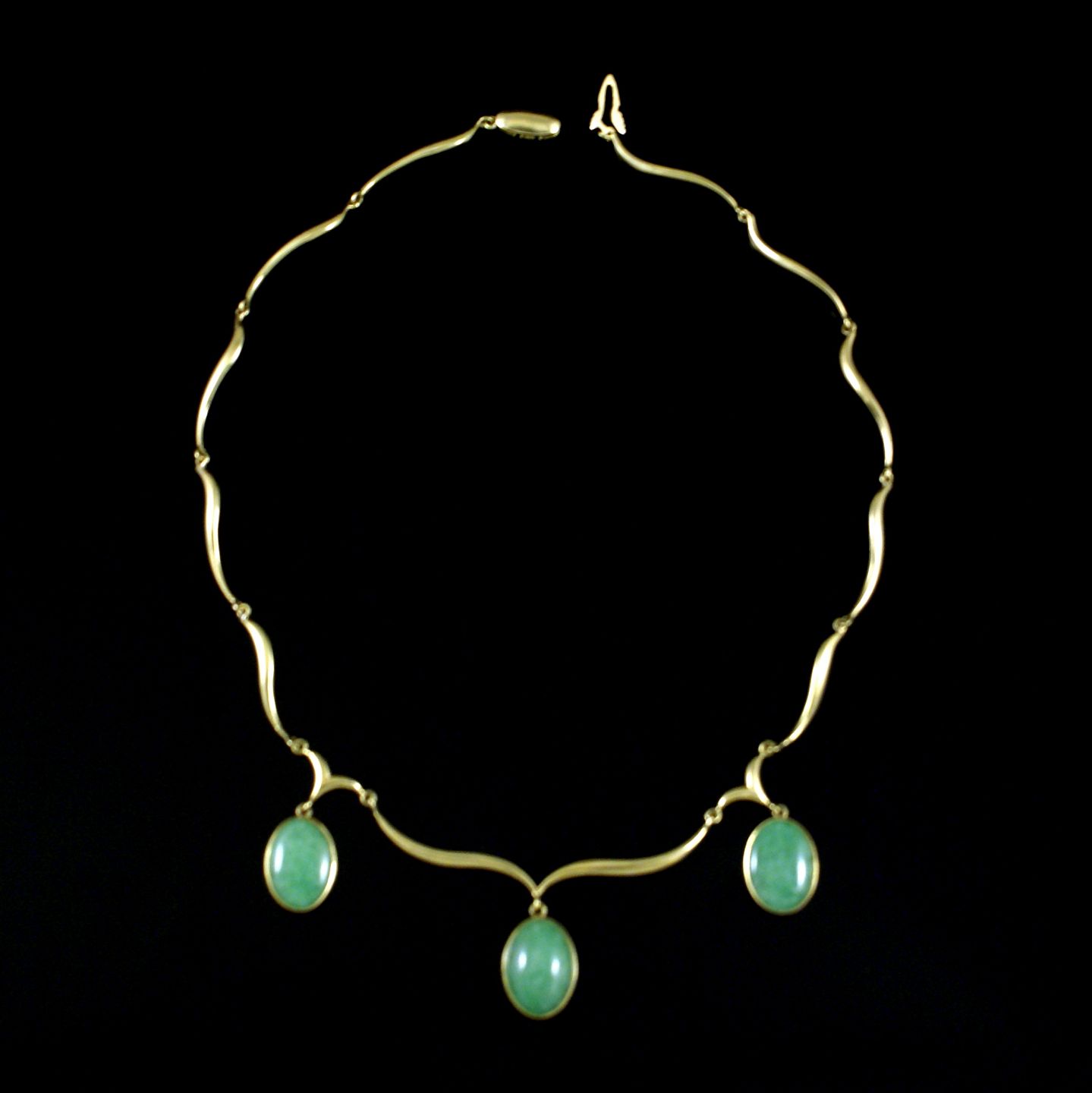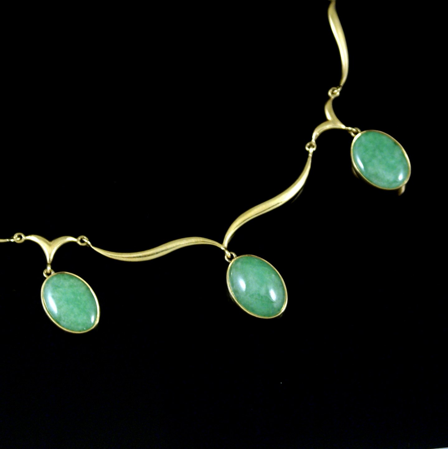 Halskæde i 14k guld med Jade cabochon.