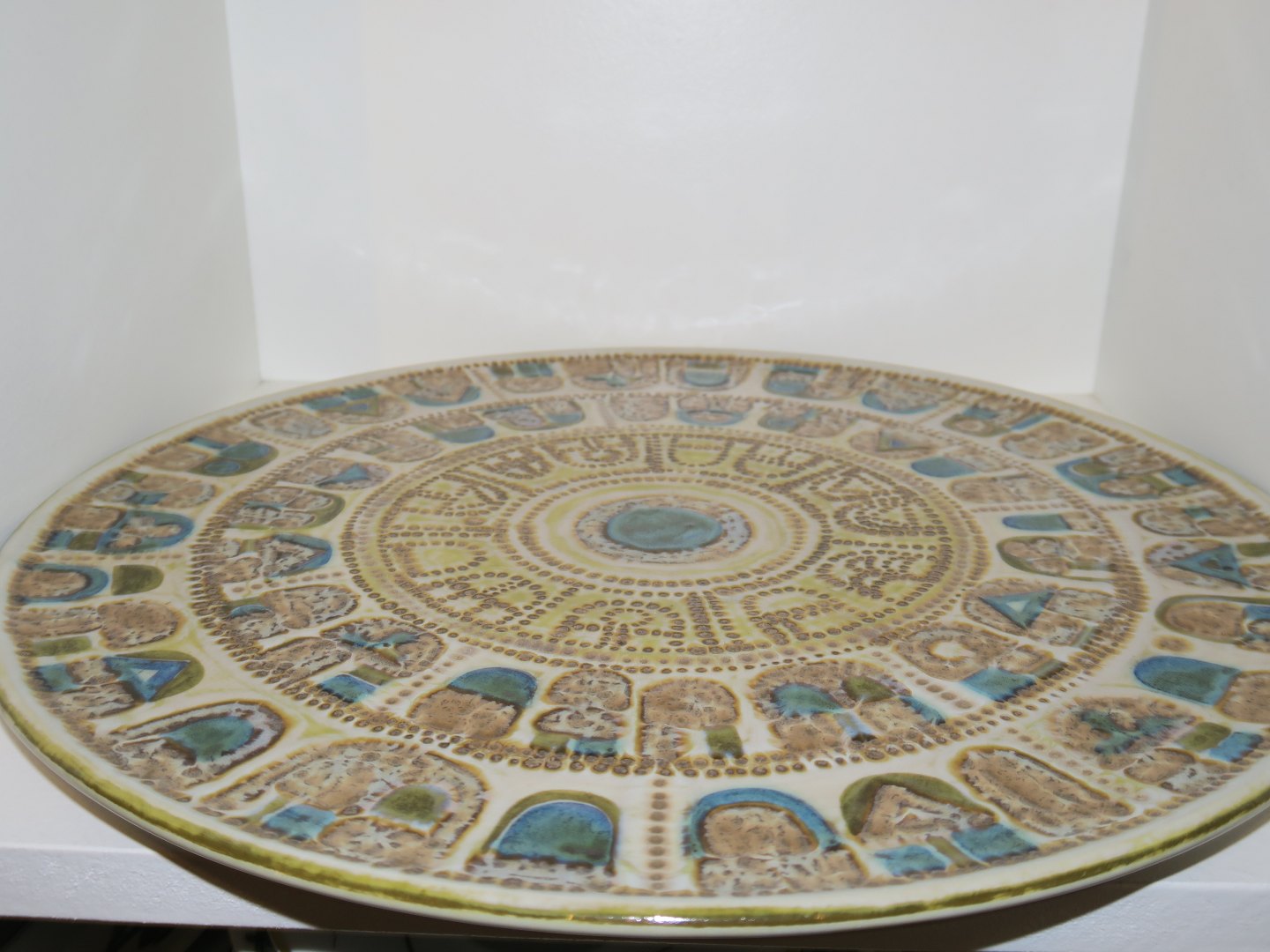Aluminia Fajance Tenera, stort unikt helt fladt rundt fad.