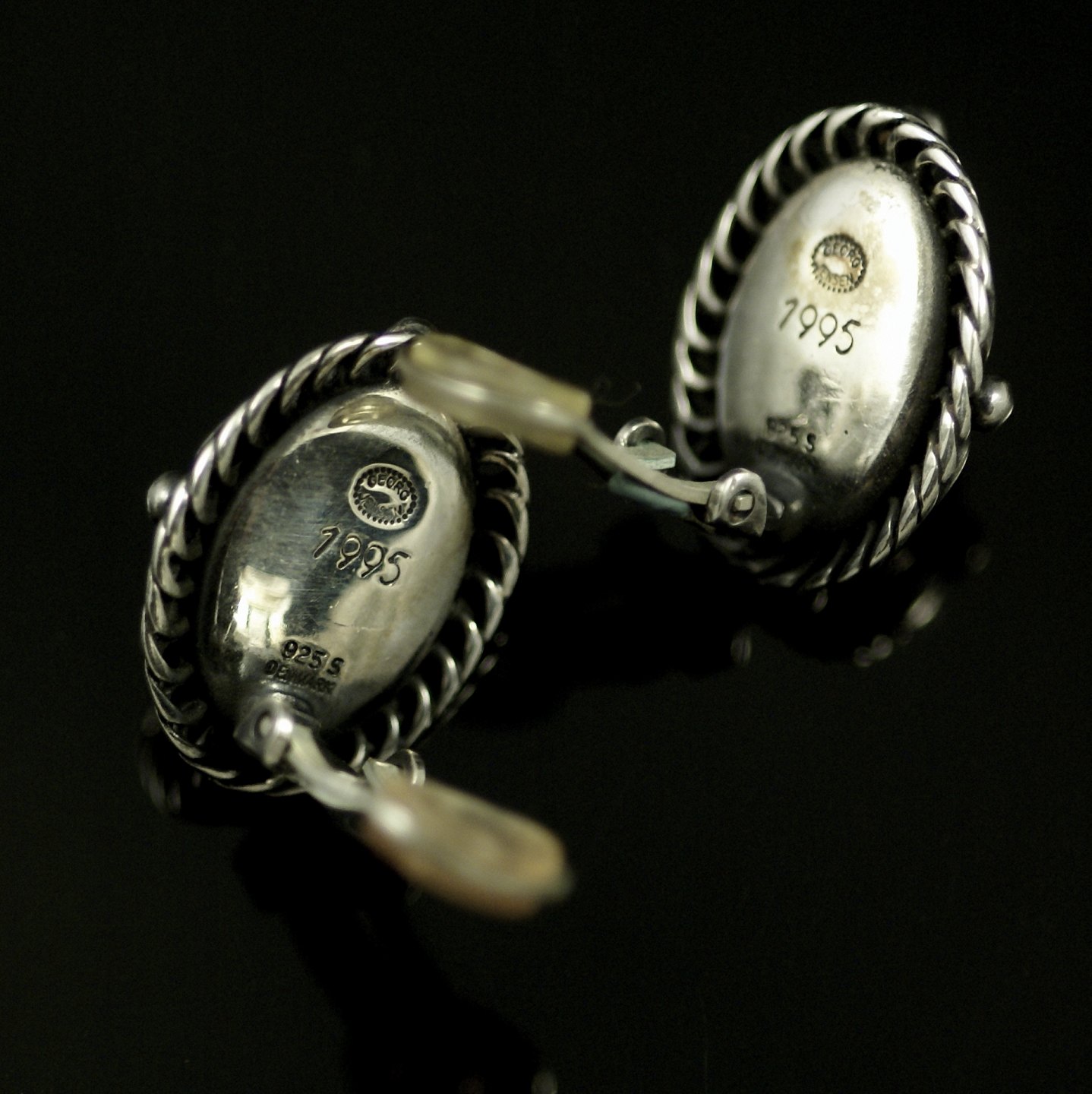 Georg Jensen. Øreclips i sterling sølv med rav - Heritage 1995