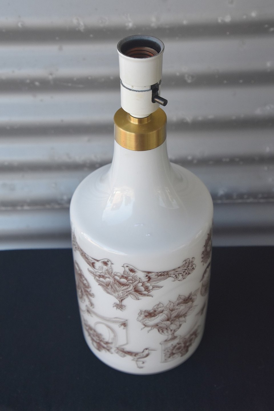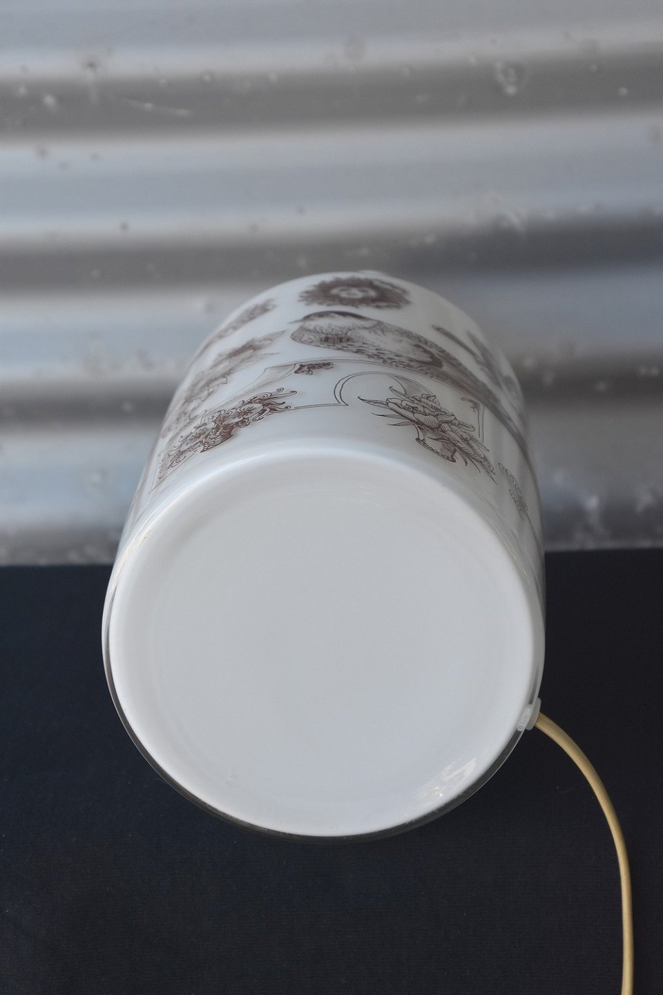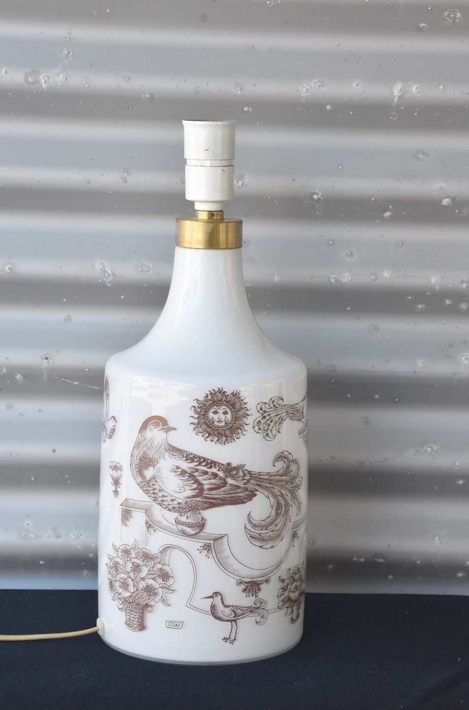 Holmegaard bordlampe. Holmegaard bordlampen er designet af Ole Winther, produceret fra 1975-1979. Bordlampen er af opalglas med brune streg tegninger af fugle.