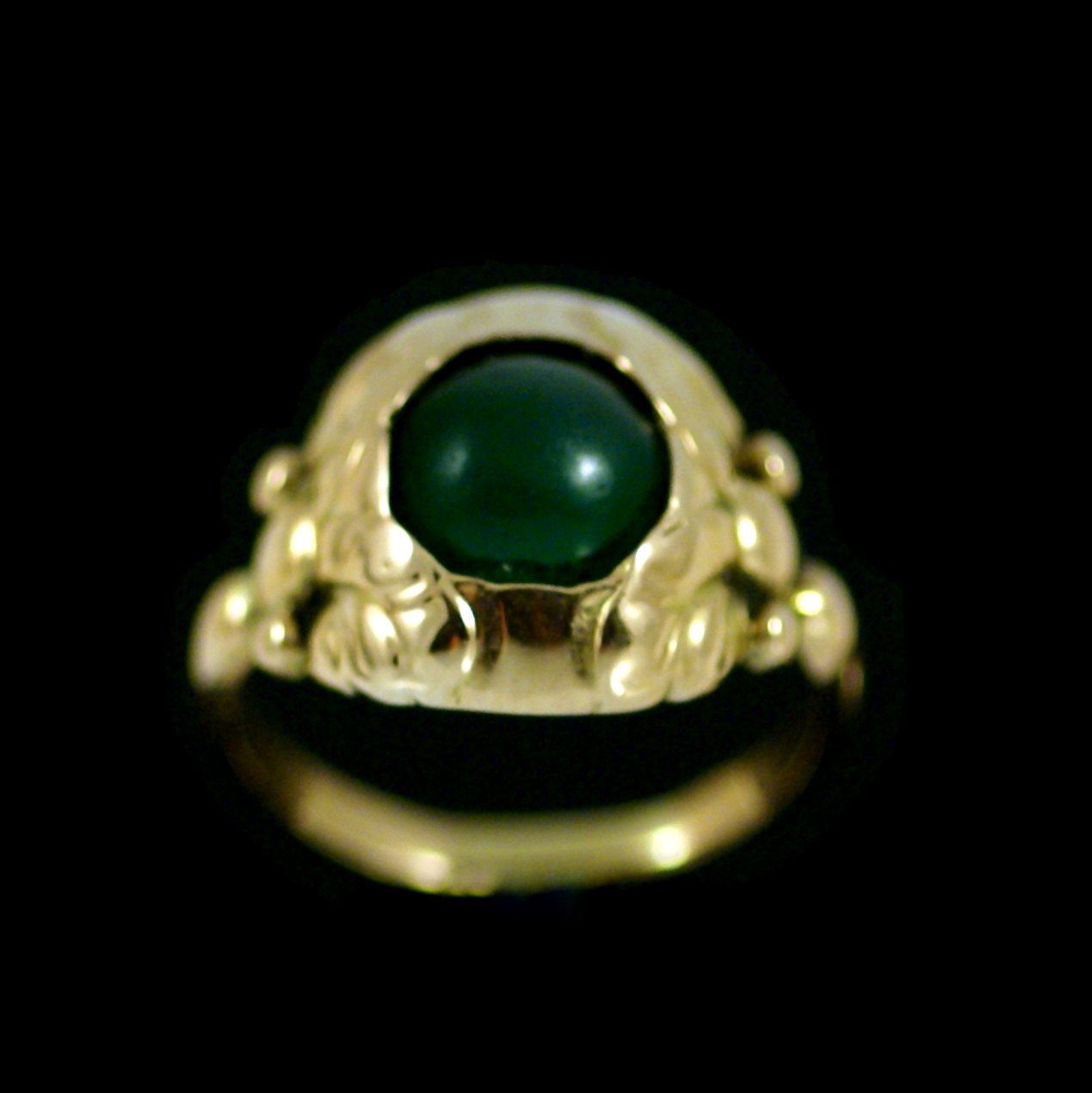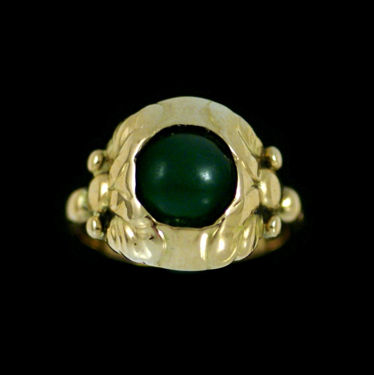 Georg Jensen Ring i 14k Guld med grøn agat #111. 1915-1930 Stampler