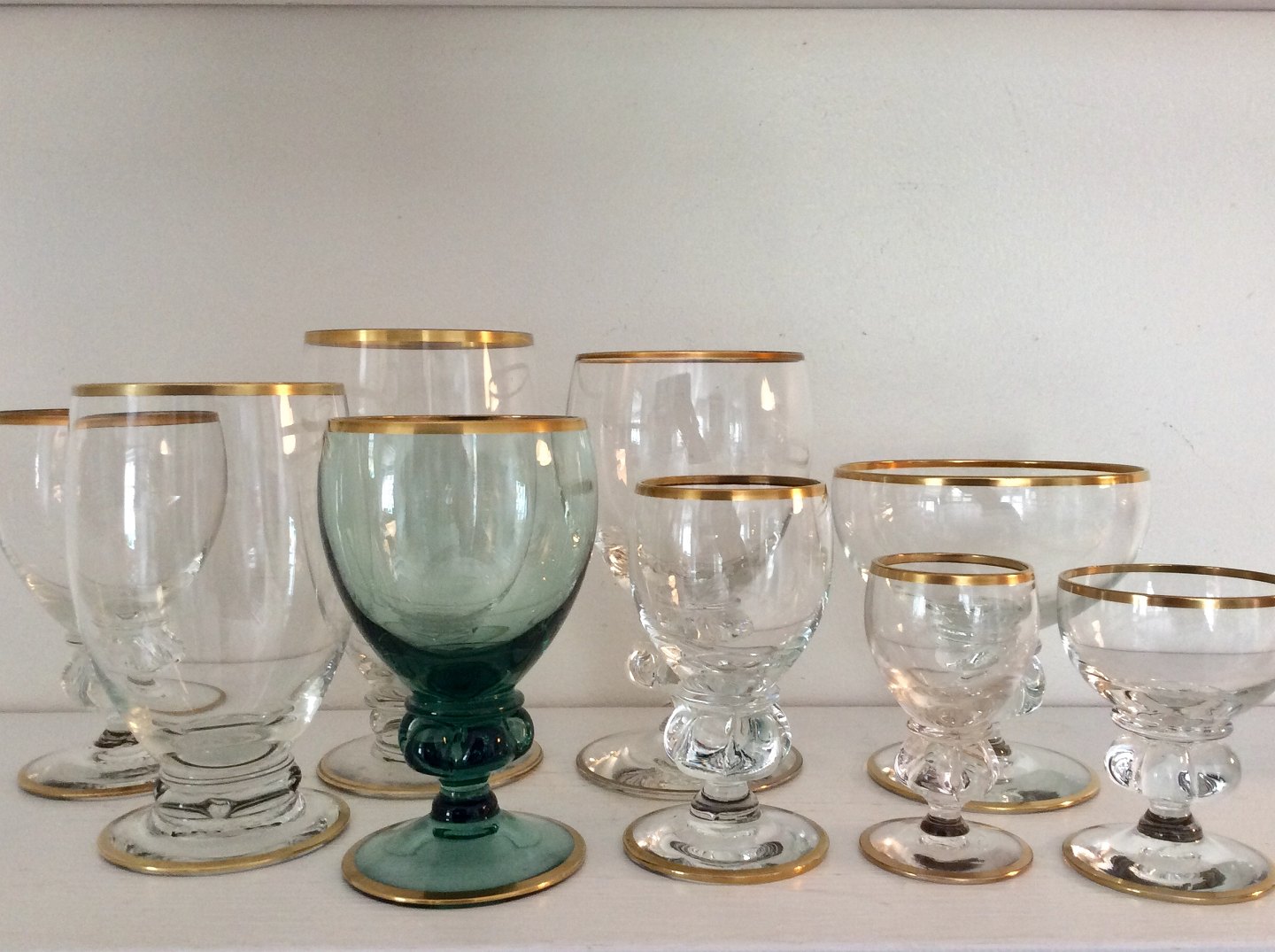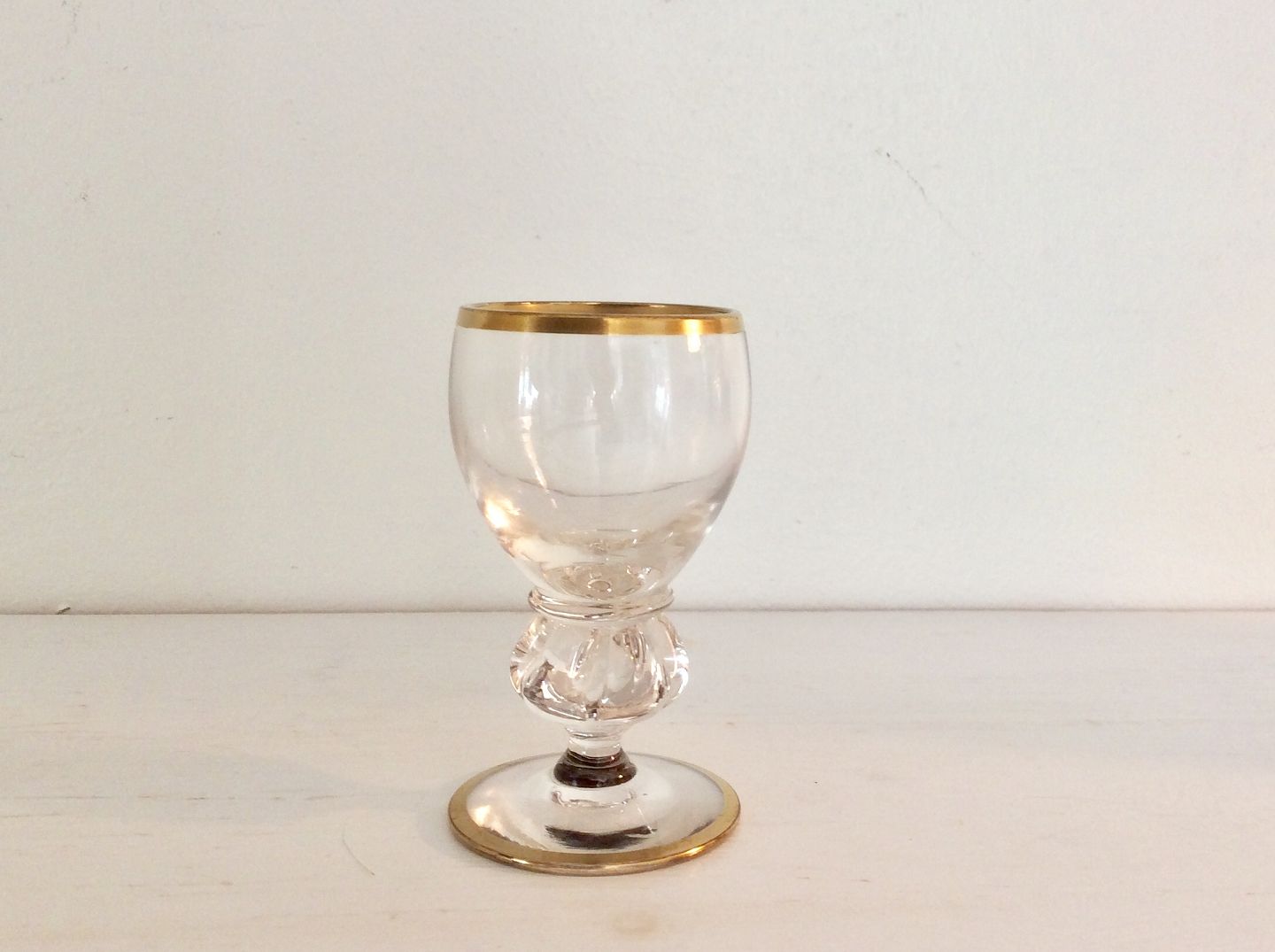 | Holmegaard, Gisselfeldt, Snapseglas med guldkant, 7,7cm høj, 3,8cm i diameter, Design Jacob E. Bang *Pæn stand*