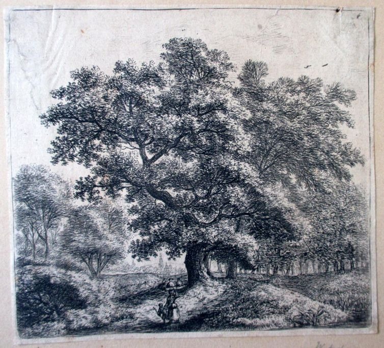 Waterloo, Anthonius (1610 - 1690) Holland: En vej ved et egetræ. Kobberstik. Usigneret. 13,2 x 15 cm.