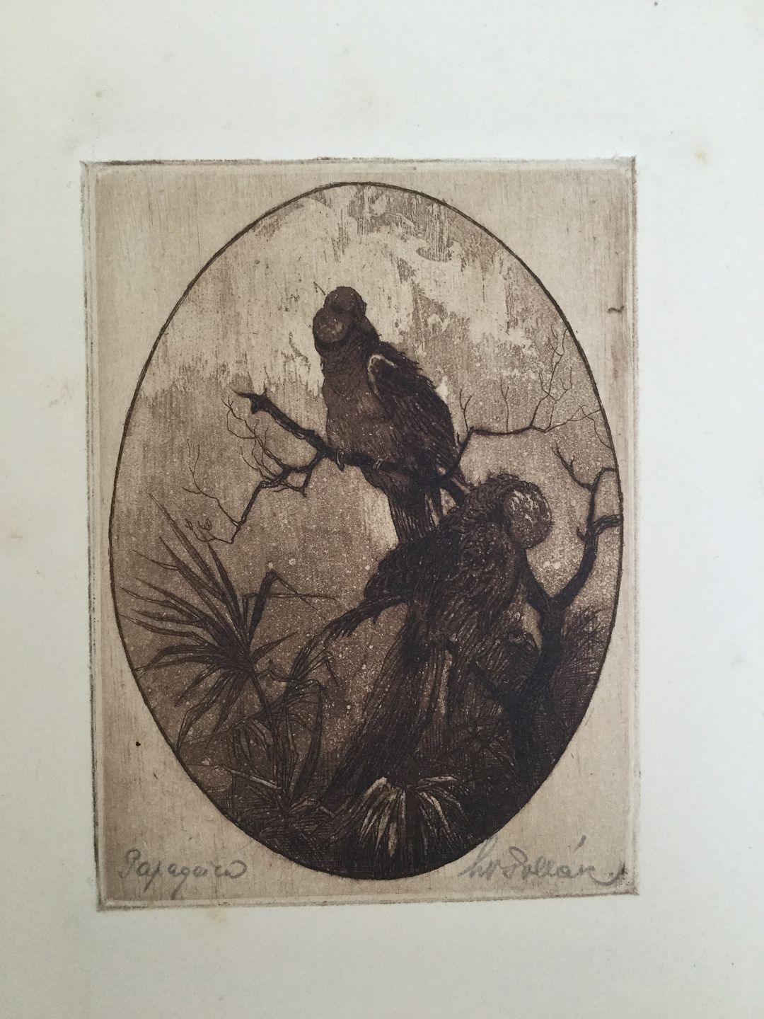 Radering af Ludwig Viktor Pollák - Papegøjer.