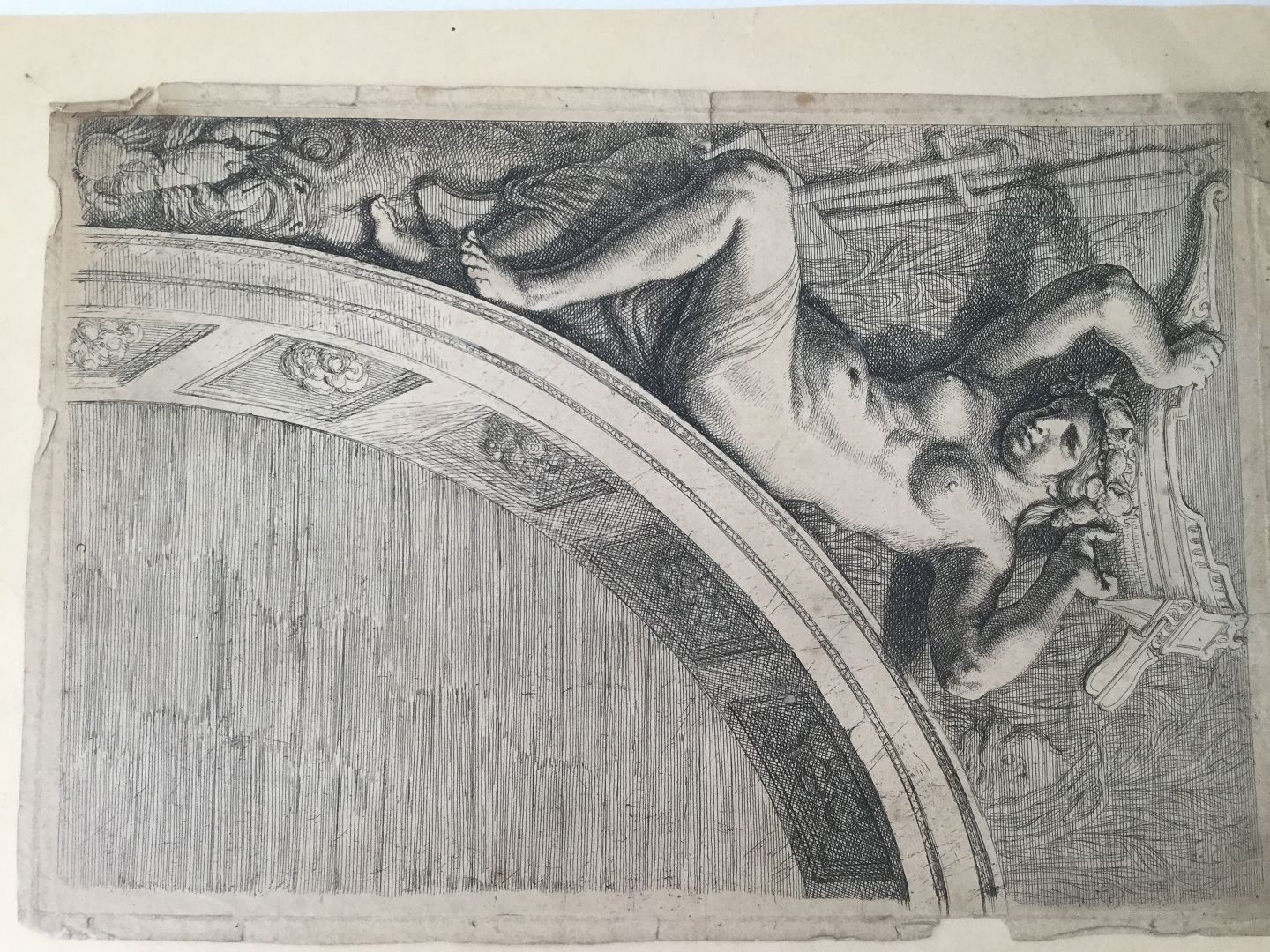 Dekoration til Rådhuset på Dam-pladsen i Amsterdam 1655. Dekorationen forestiller dele af et relief der personificere et af de fire vandelementer med en kvinde der holder et skib.
