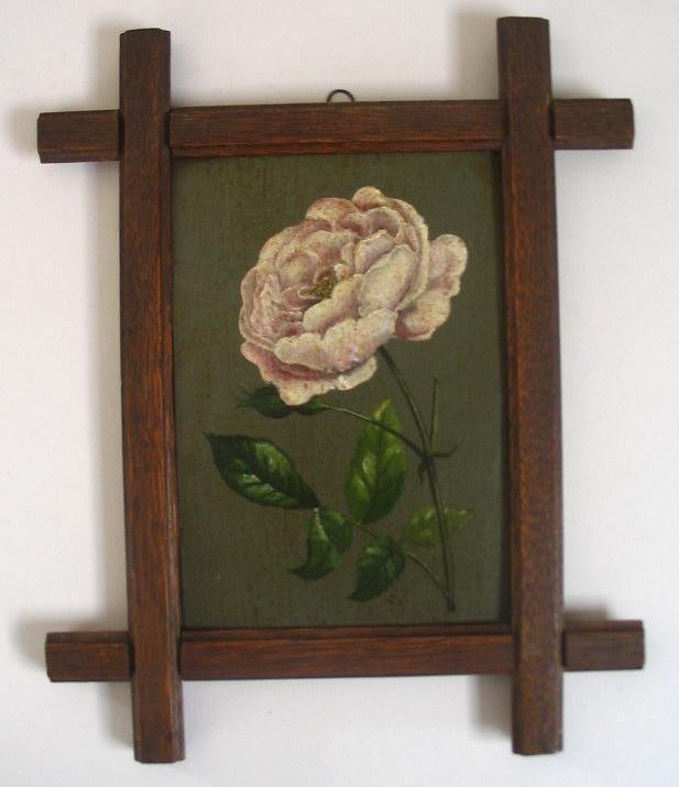 Dansk blomstermaler (19. årh.): En lyserød rose. Olie på pap. 15,5 x 11 cm. Sign.: Monogram WK 91.