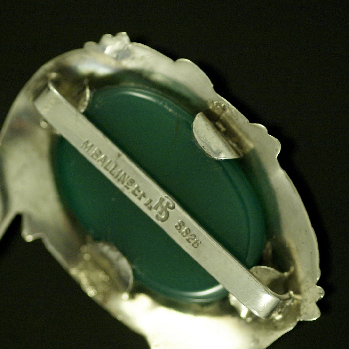 Mogens Ballin's Eftf. Skønvirke Bæltespænde i sølv med grøn agat.