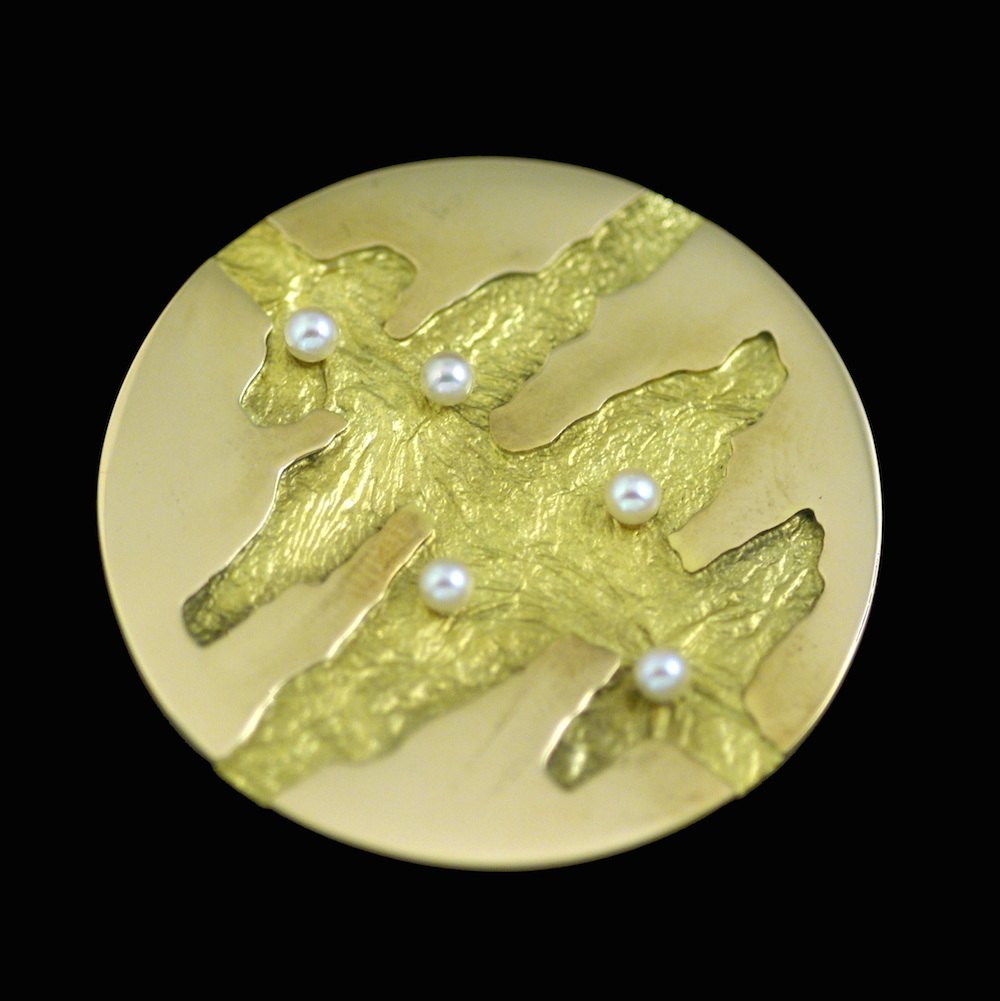 Bent Gabrielsen. Broche i 14k guld med perler. 1960erne