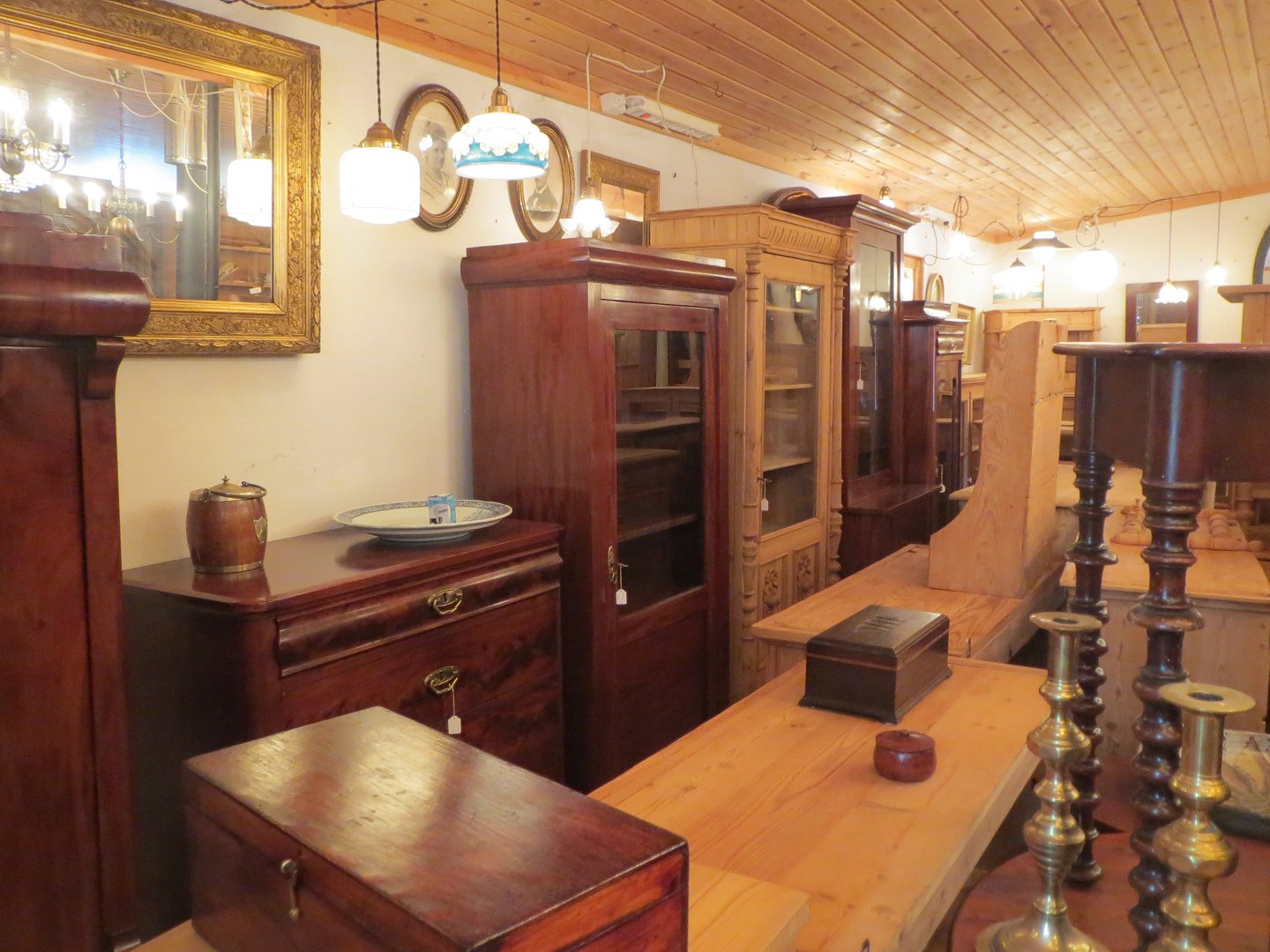 Stor salgsudstilling med restaurerede møbler håndpolerede mahognimøbler, afsyrede fyrretræsmøbler, malede træmøbler, kun originale gamle og antikke møbler.