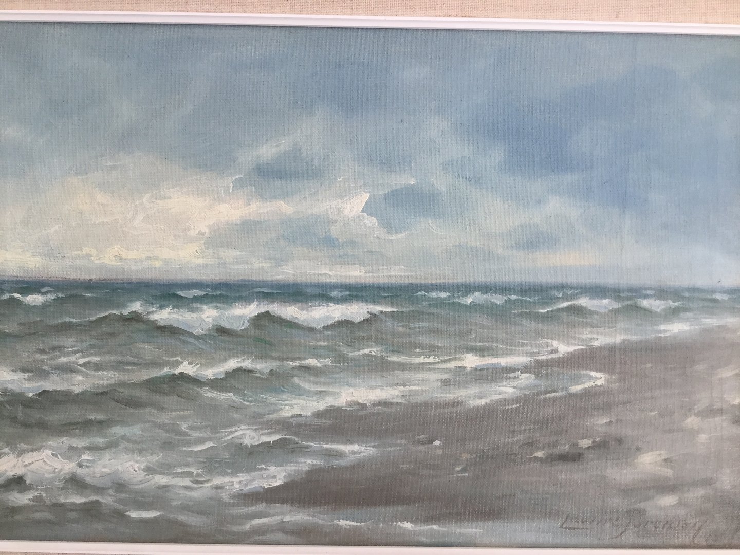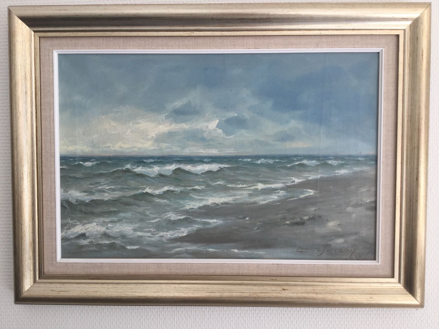 Maleri af Lauritz Sørensen - Kystparti ved solnedgang.