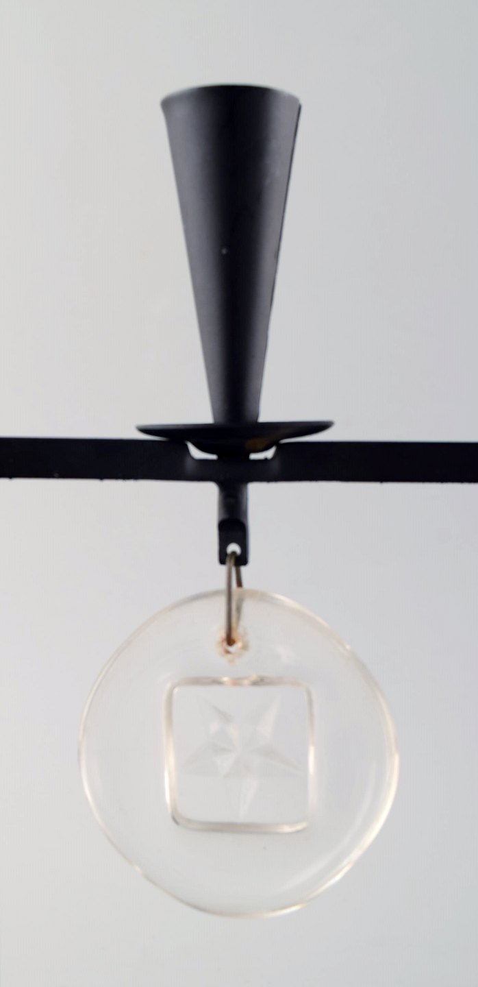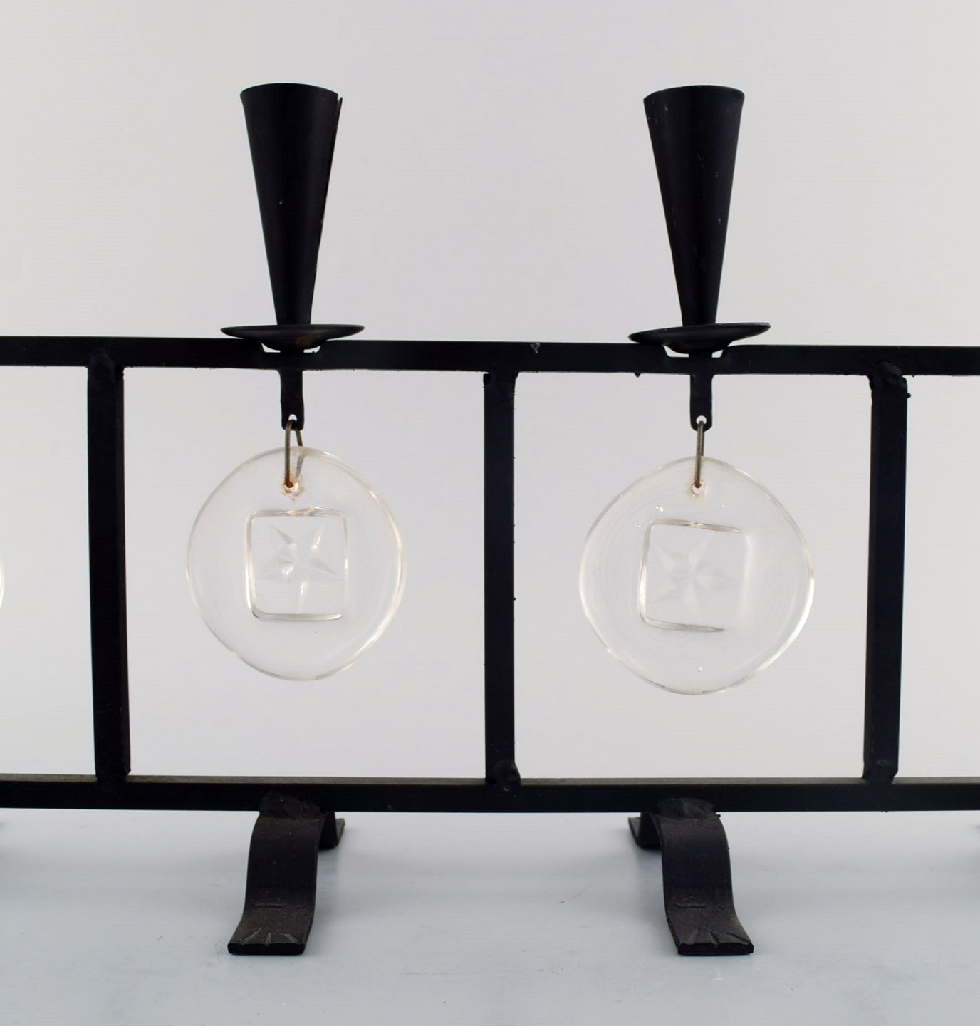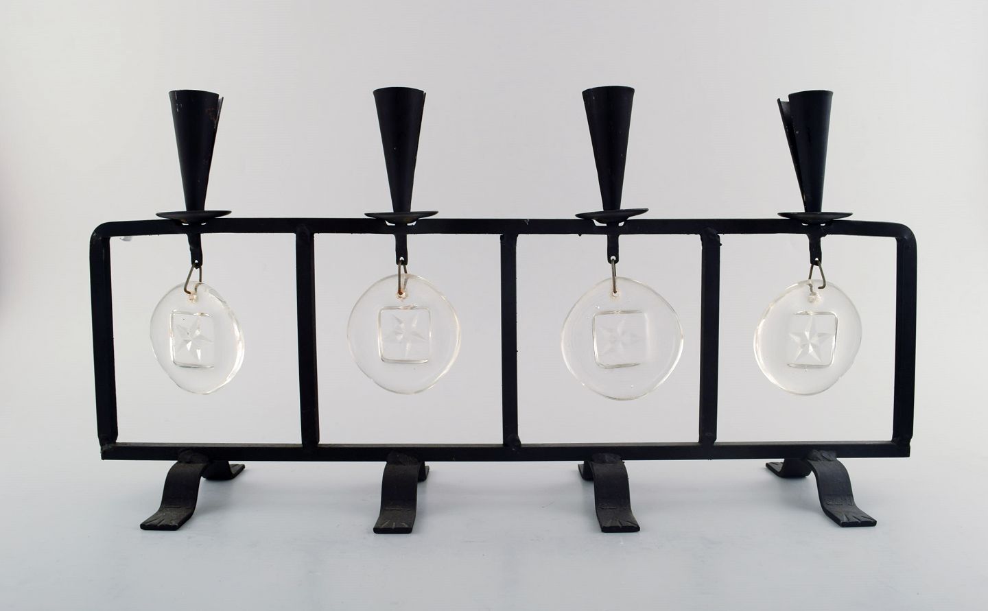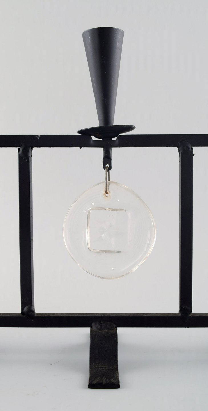 Erik Höglund for Kosta Boda, lysestage i støbejern med mundblæste glas.