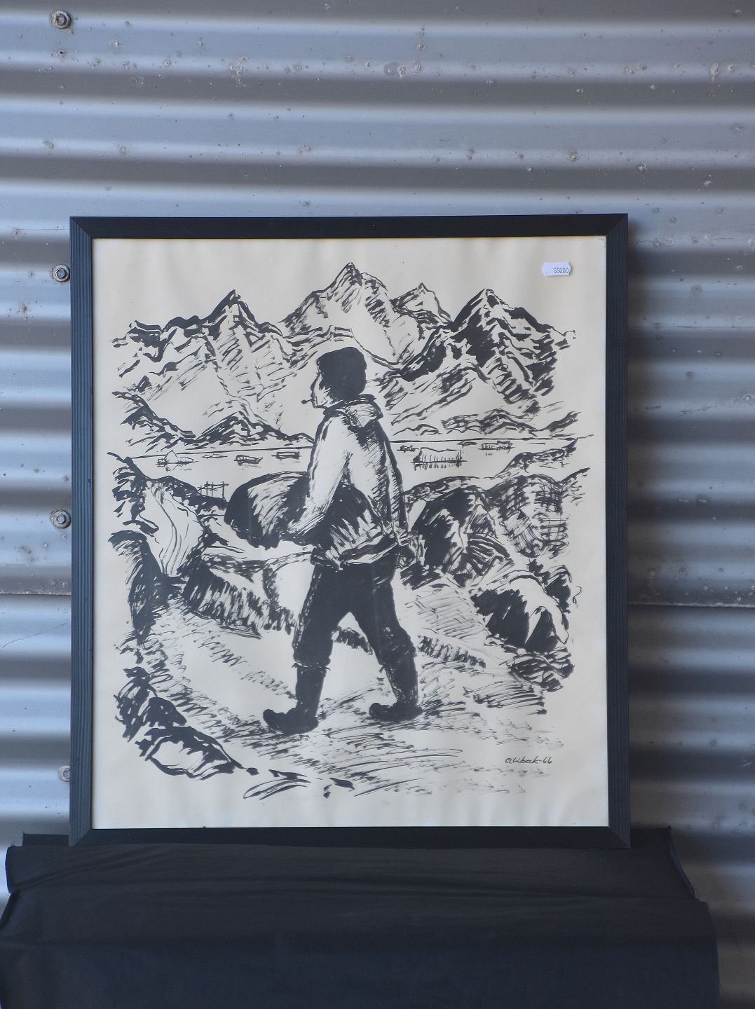 Tryk med motiv af eskimo af Alibak Johansen. Fra 1966.
