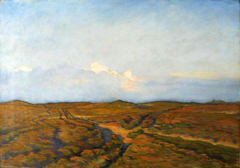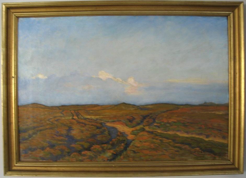 Gustav Adolf Clemens (1870 - 1918): Danmark. Hedeparti. Resenborg. Olie på lærred. Sign.: G. A. Clemens, Resenborg Sept. 93. 45 x 64 cm.