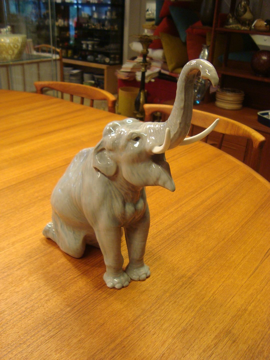 B & G 1502 Elefant på knæ Dahl Jensen 28 cm, 1 sort i fin og hel stand