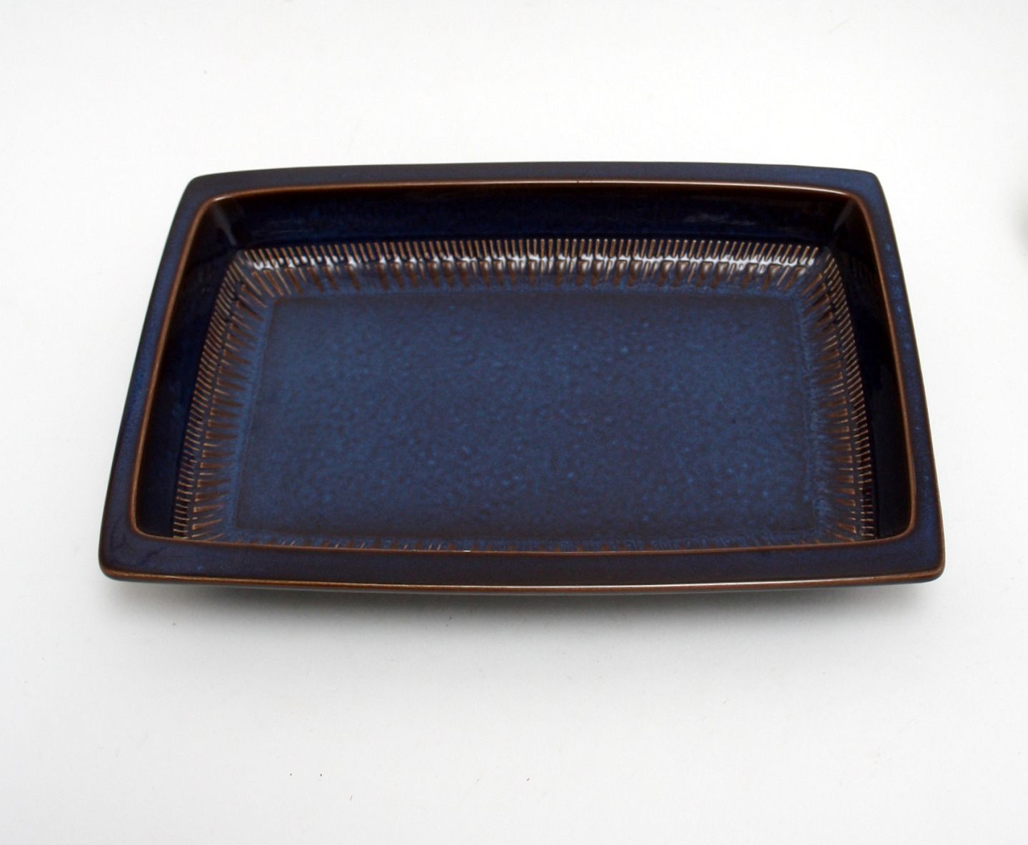 Aflangt dybt fad. Formnr T-90. Højde 4 cm. Længde 30 cm. Bredde 21,5 cm. Fin stand. Pris: 325 kr. stk. Lager: 1