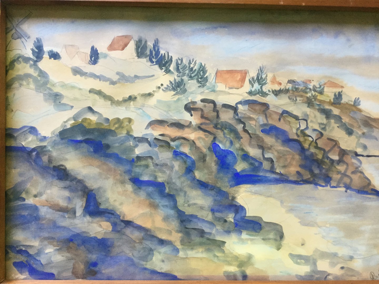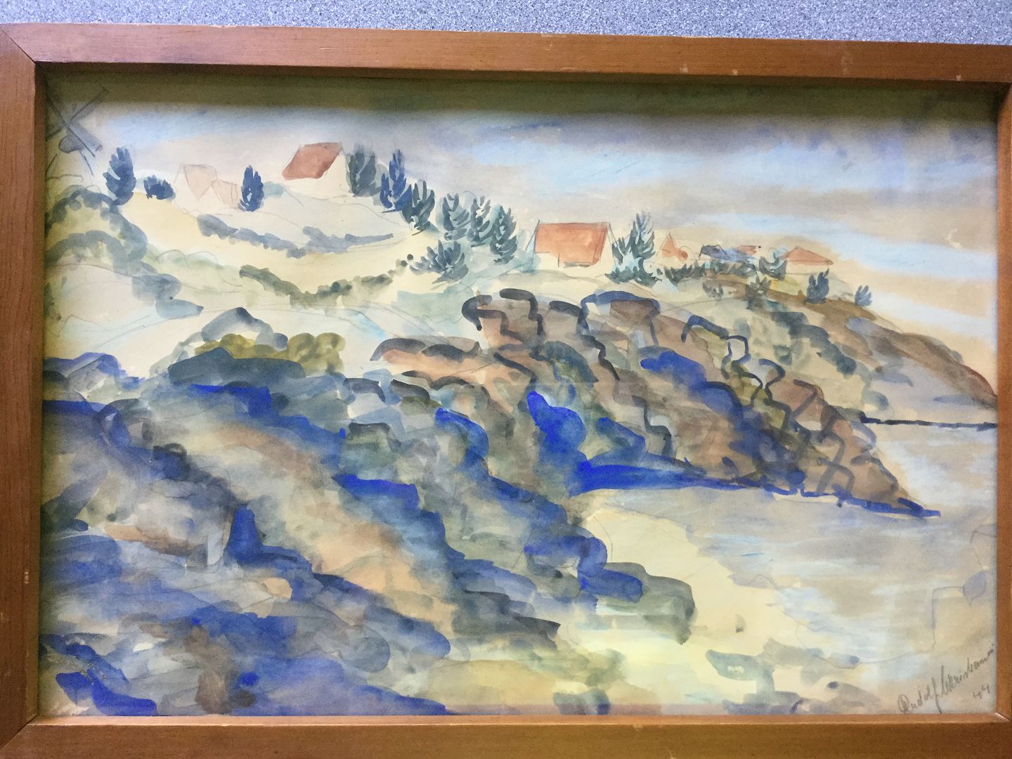 Akvarel af Rudolf Christiansen 1944 - Kystparti fra Bornholm.