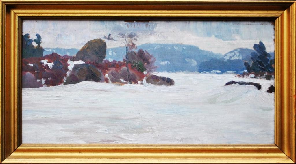 Duphorn, Hugo (1876 - 1909) Germany. Winter study, Halland, Sweden. Verso signed. 21 x 42 cm.