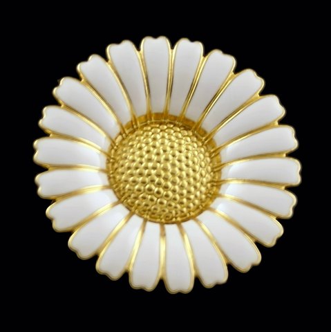 Bernhard Hertz Marguerit / Daisy Broche i forgyldt Sterling Sølv med hvid emalje - 43mm.