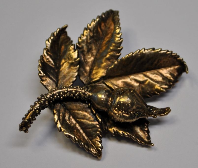 Brosche, forgyldt sterling sølv, "Flora Danica", Eggert, 20. årh. København, Danmark.