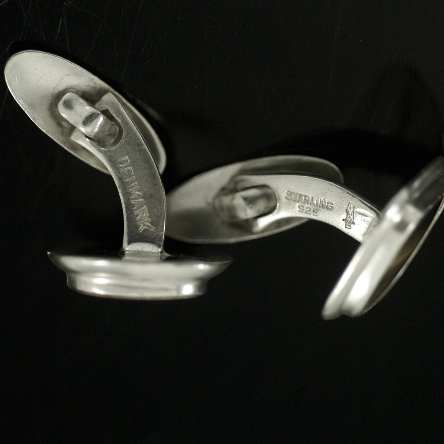 A.P. Berg. Manchetknapper i sterlingsølv med tigerøje. 1960erne.