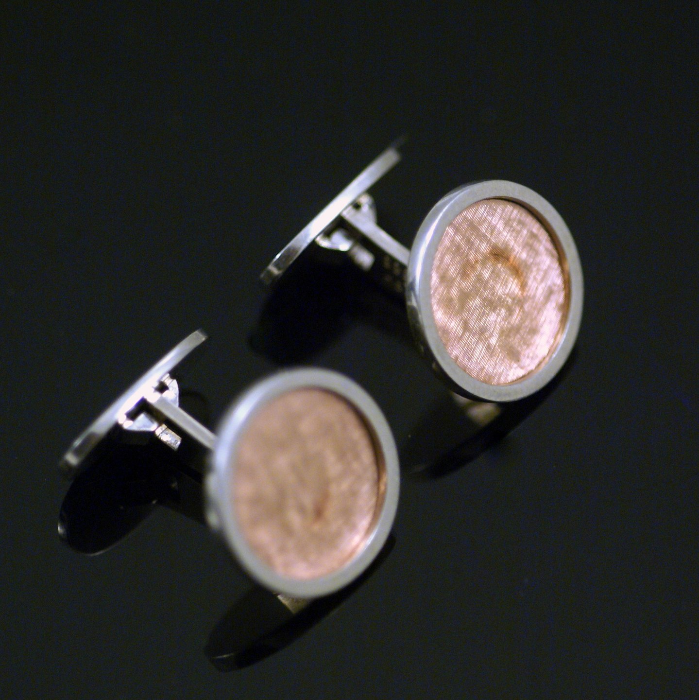 Christian Frederik Heise. Manchetknapper i 14k hvidguld og rødguld.