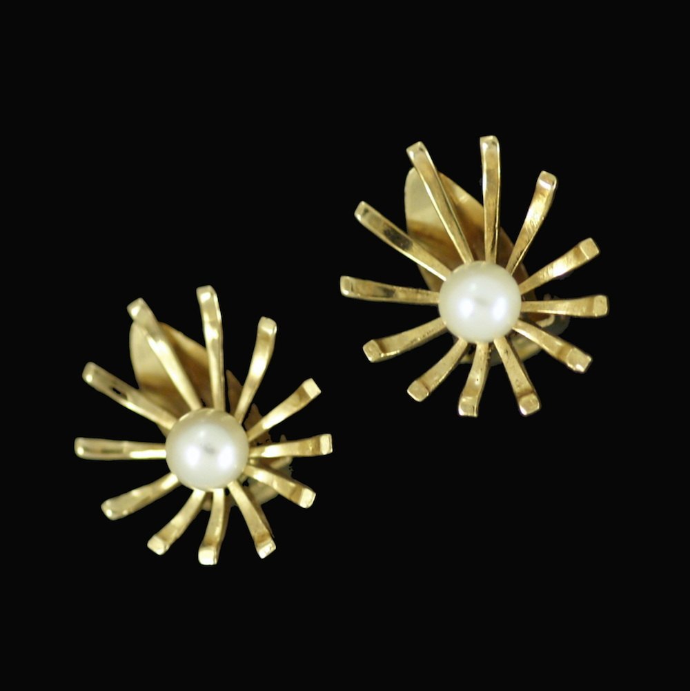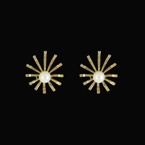 Bernhard Hertz. Øreclips i 14k guld med perler.