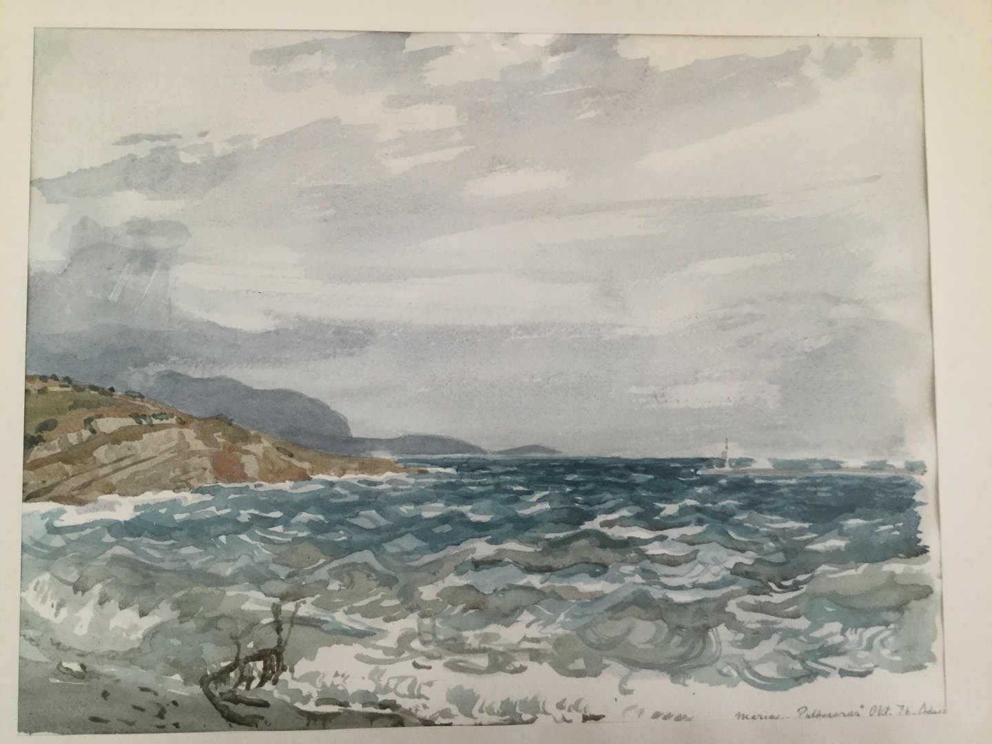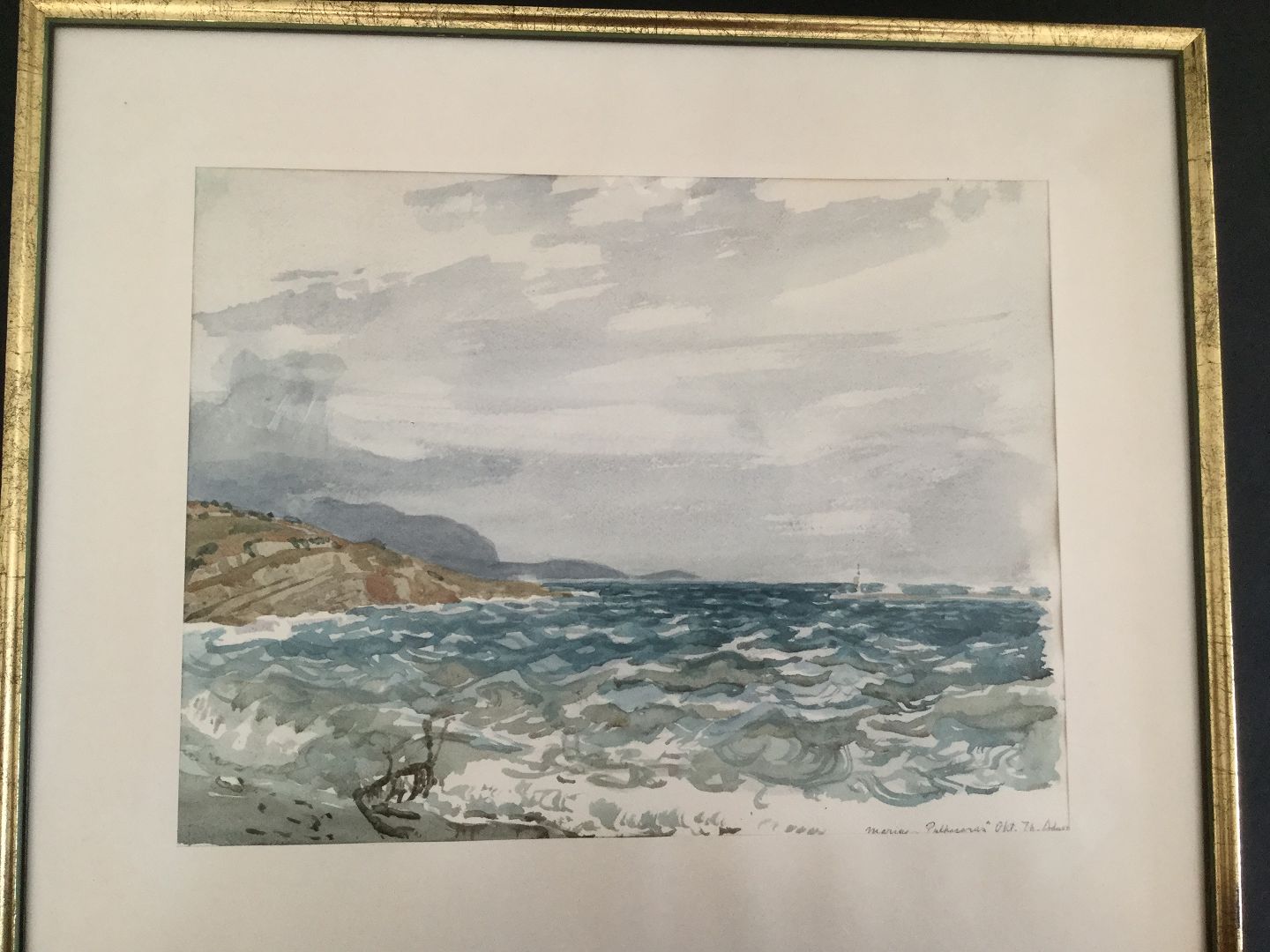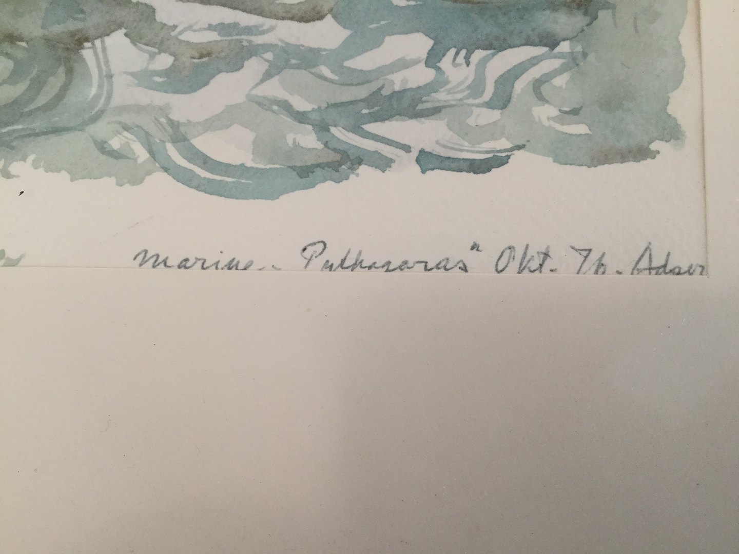 Text available in Danish: Akvarel af Karl Adser - Marine, Pythagoras 1976.