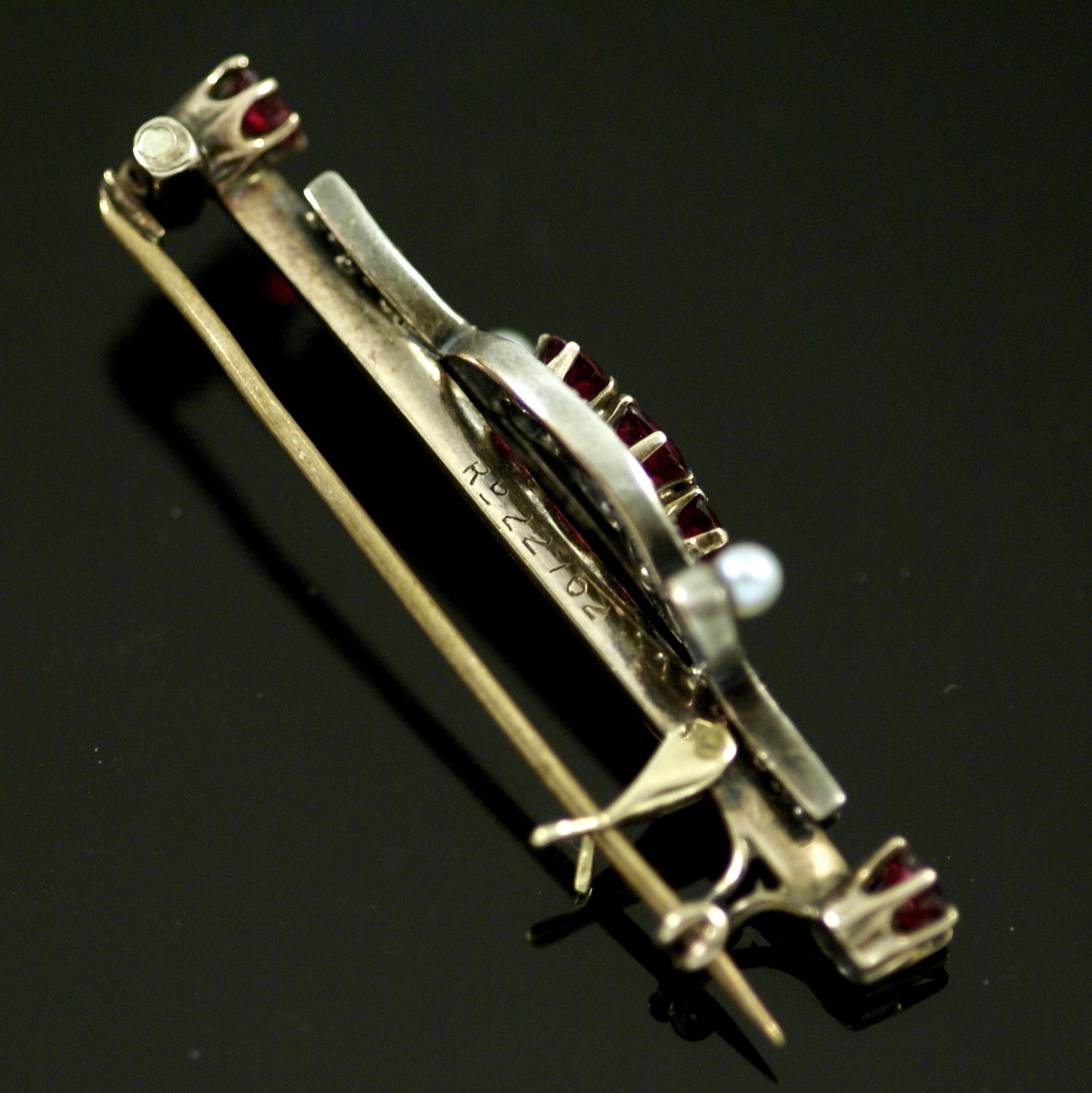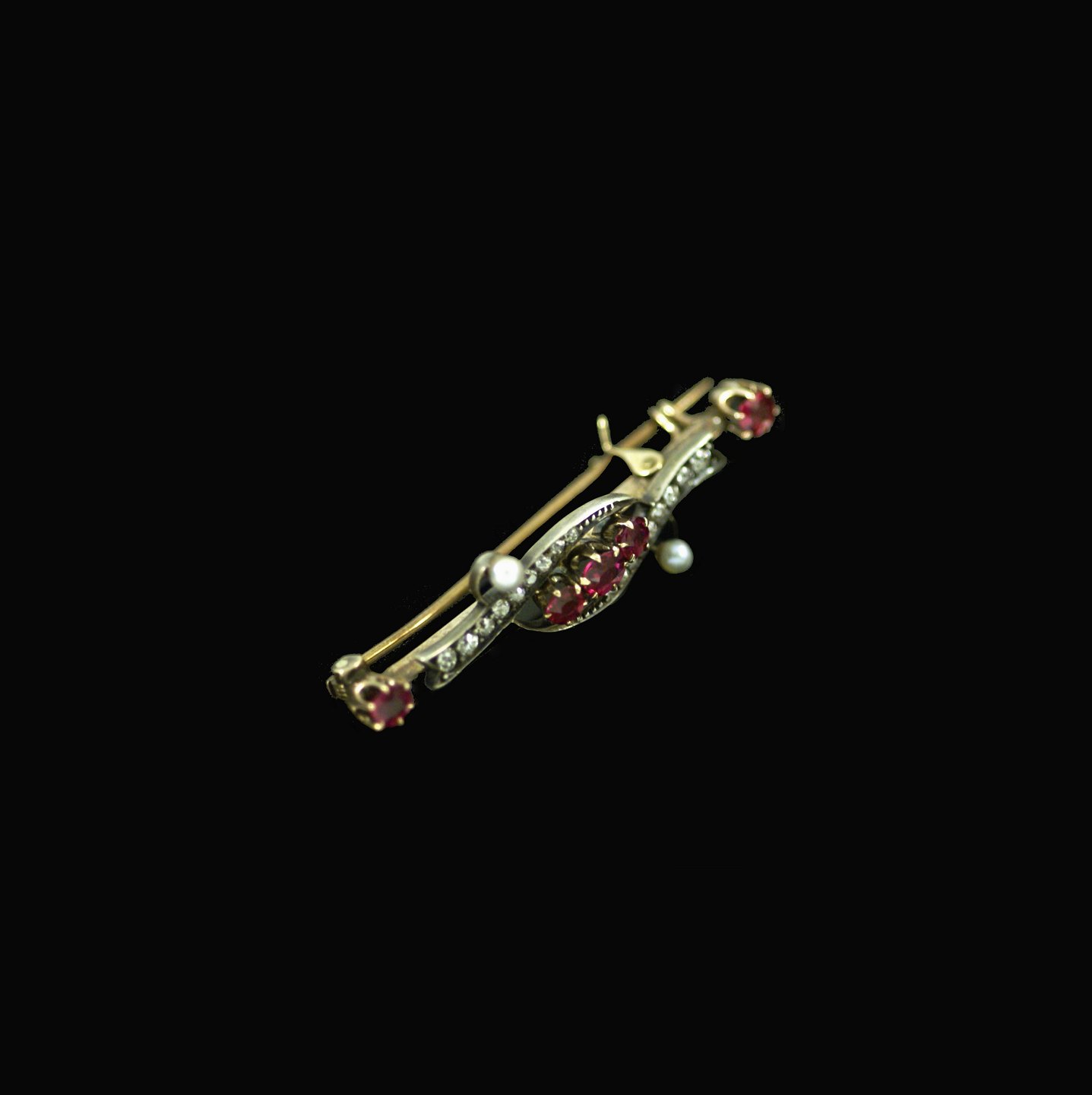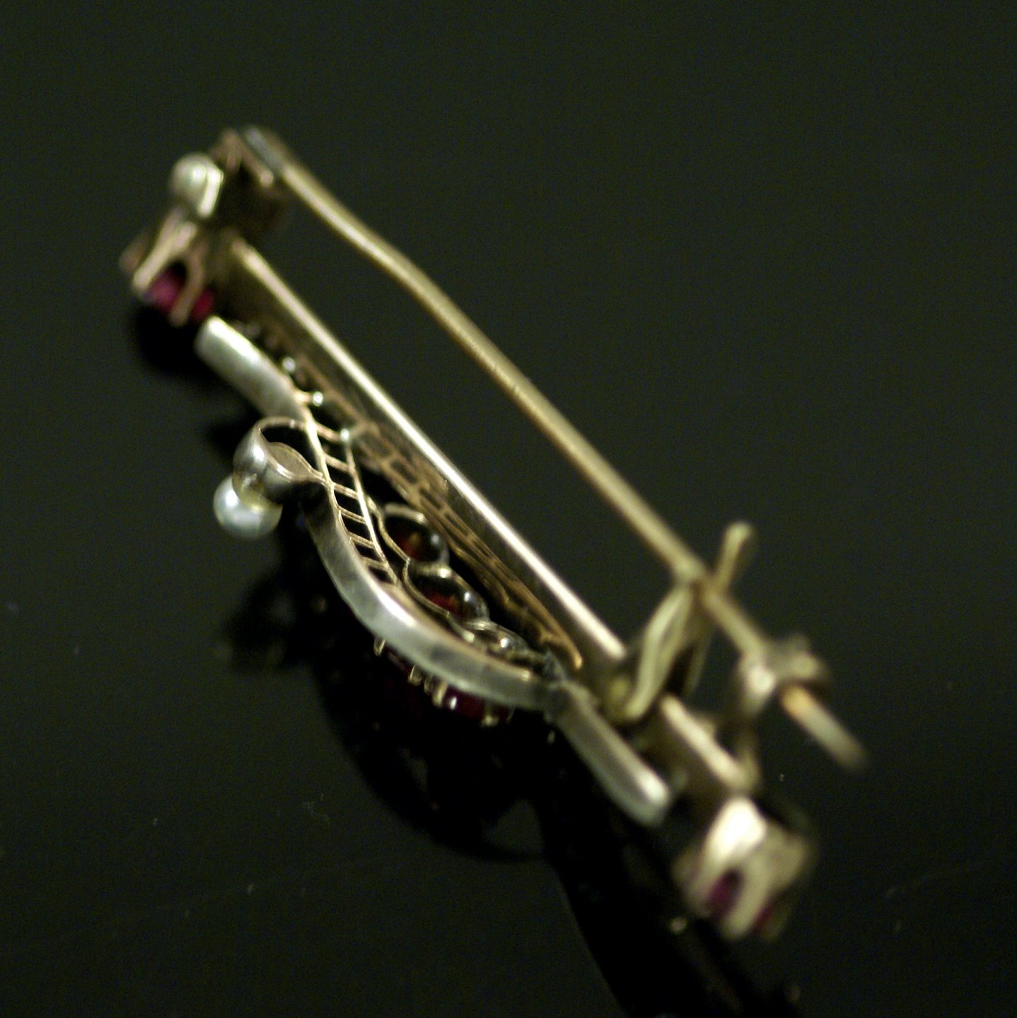 Vintage broche i 14k guld med Turmalin, orientalske perler og diamanter.