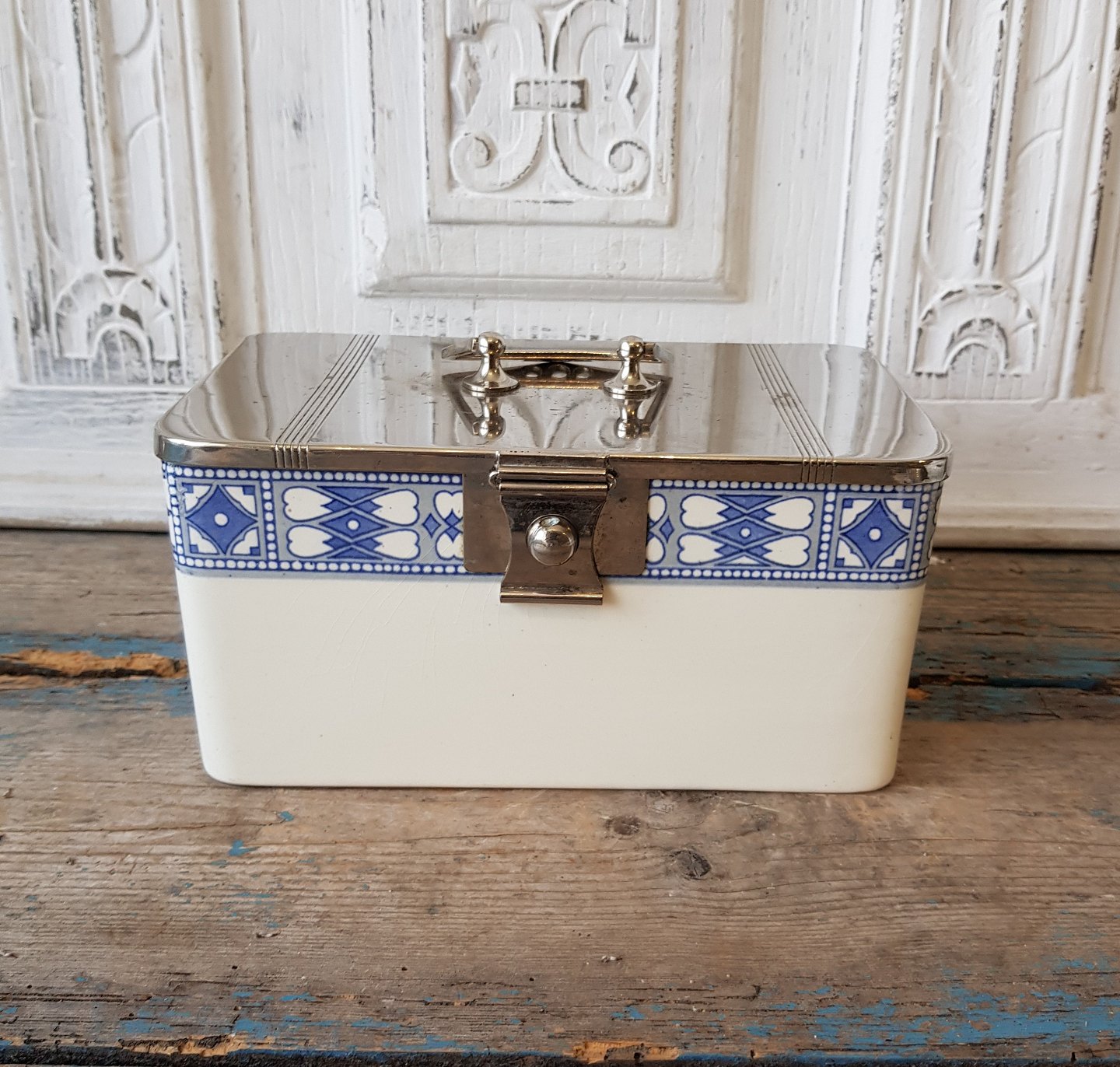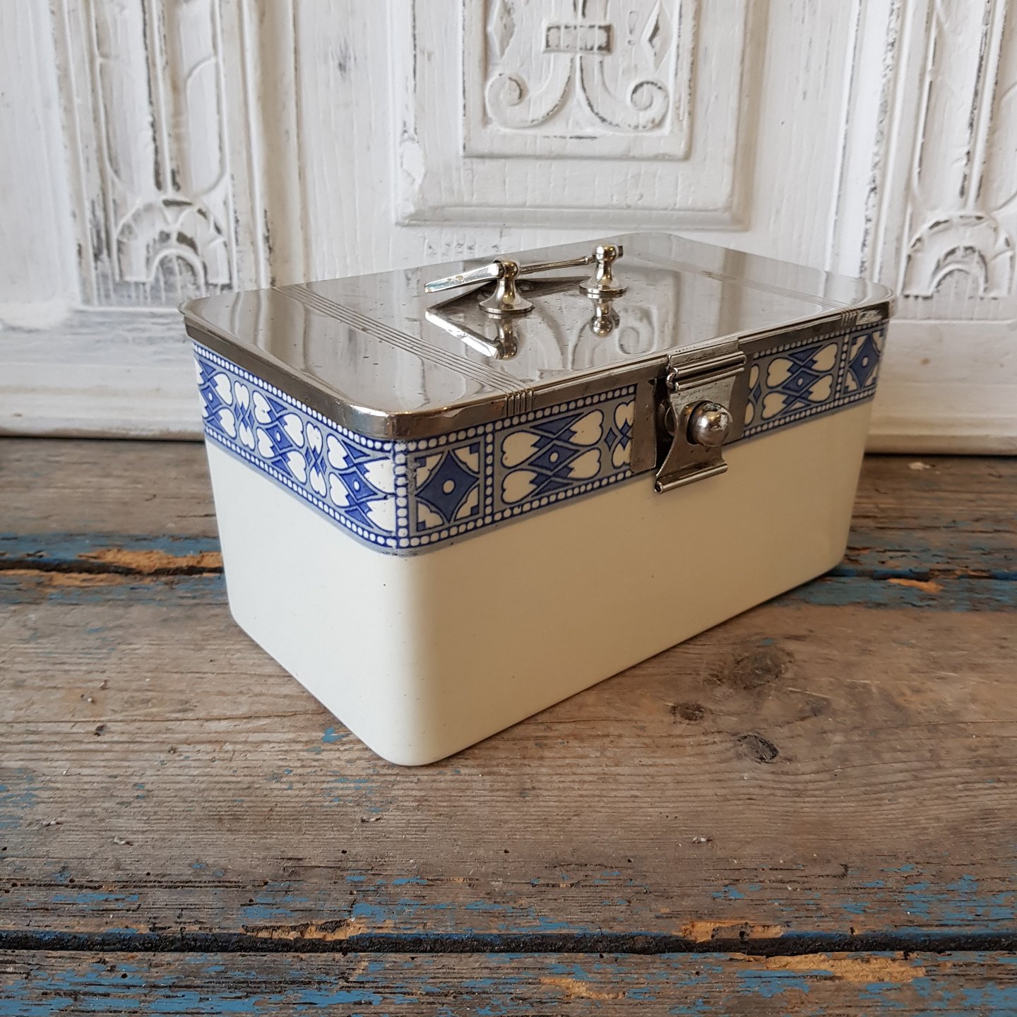 Villeroy & Boch fajance boks med forkromet metal låg.