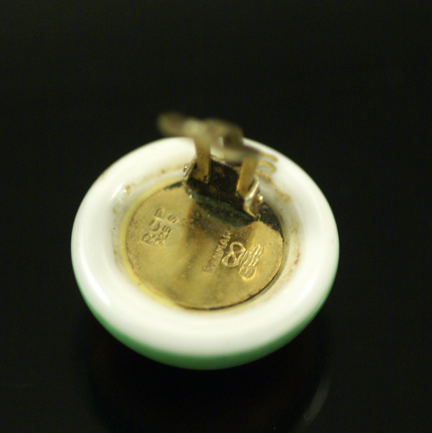 Royal Copenhagen. Øreclips i forgyldt Sterling Sølv med porcelæn.