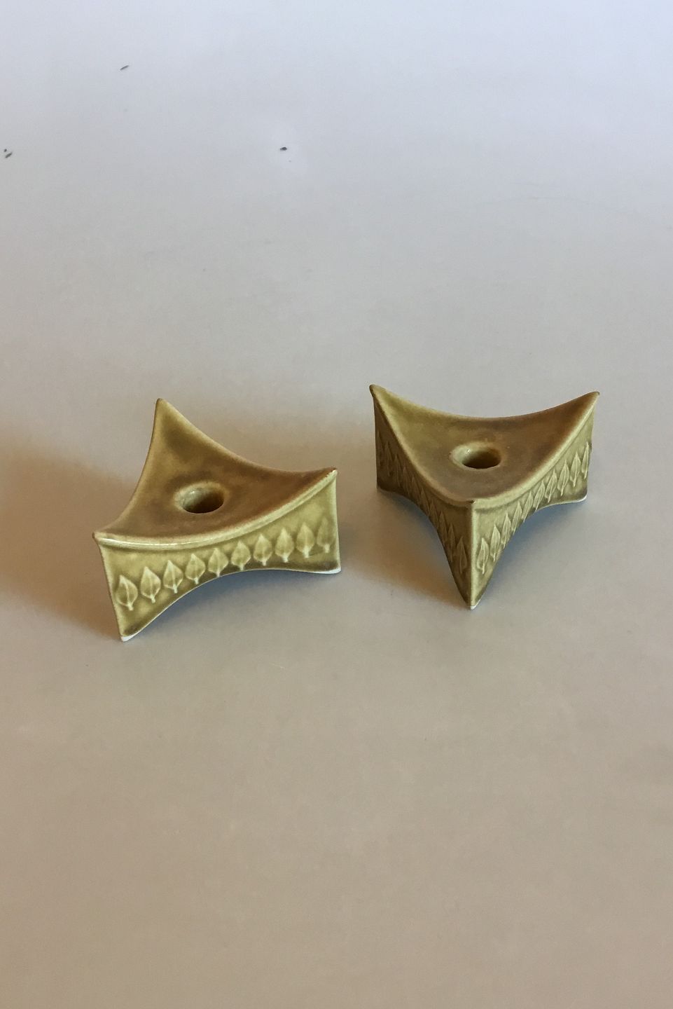 Bing & Grøndahl Jens Quistgaard Trekantede Lysestager fra Relief Serien. Keramisk stentøj (Kronjyden). Måler 5 cm x 8,5 cm