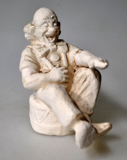 Carlsen, Poul Hauch (1921 - 2006) Denmark: A clown on a barrel. Plaster. Signed. Height: 12 cm.