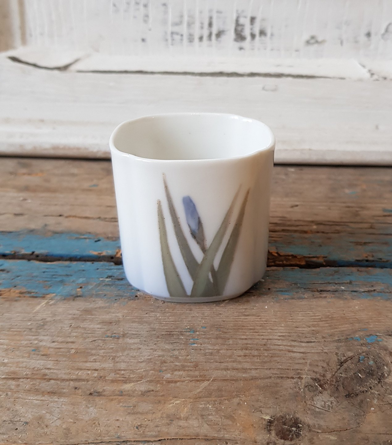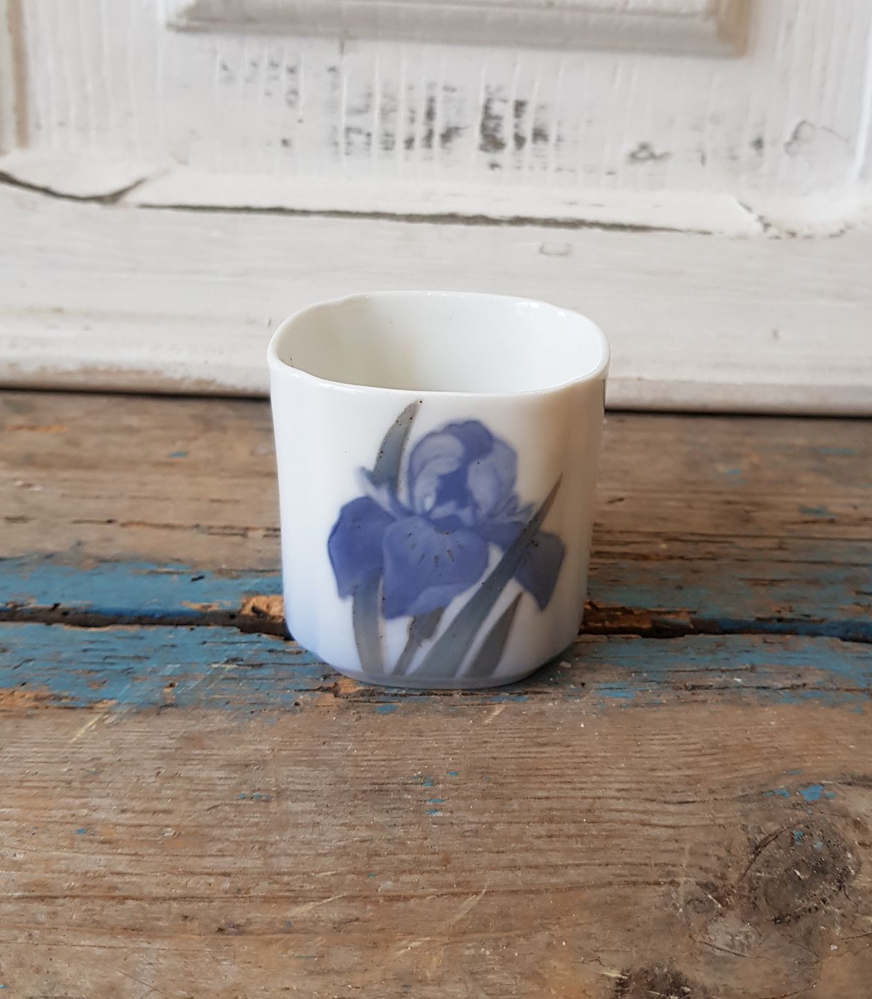 Royal Copenhagen Art Nouveau bæger/vase dekoreret med blå iris.